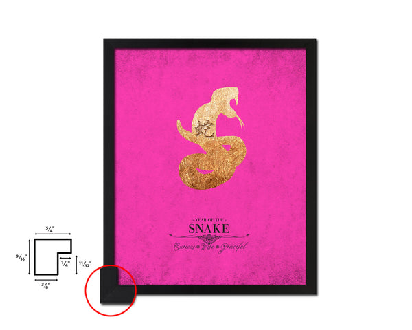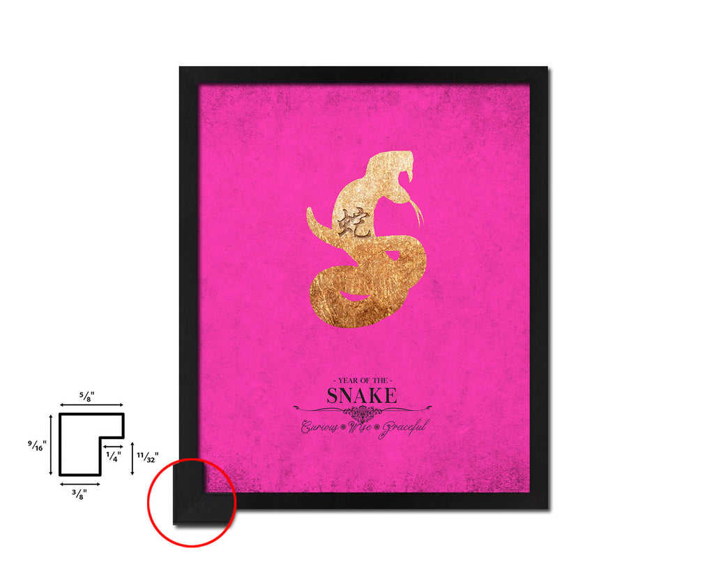 Snake Chinese Zodiac Character Black Framed Art Paper Print Wall Art Decor Gifts, Pink