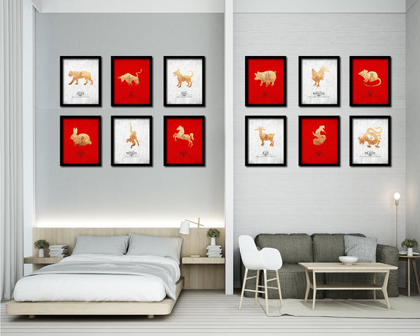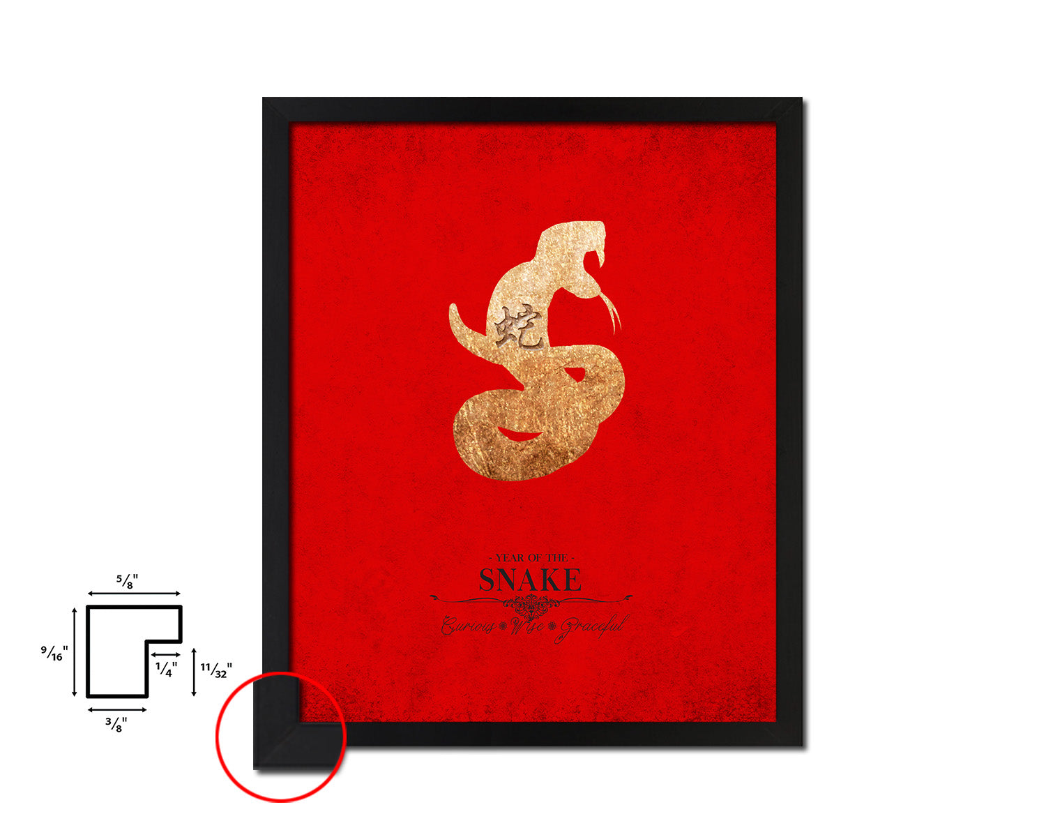 Snake Chinese Zodiac Character Black Framed Art Paper Print Wall Art Decor Gifts, Red