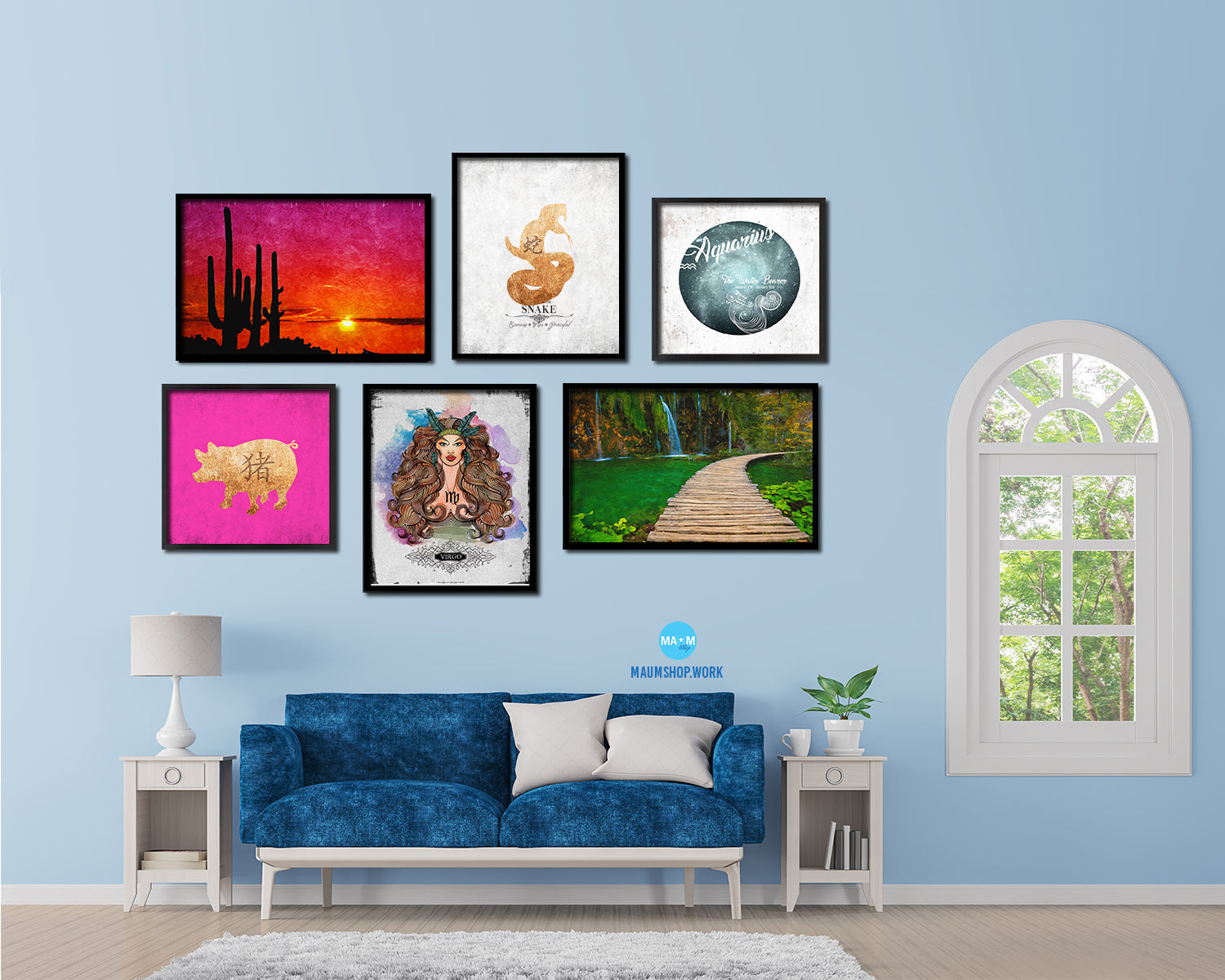 Snake Chinese Zodiac Character Black Framed Art Paper Print Wall Art Decor Gifts, White