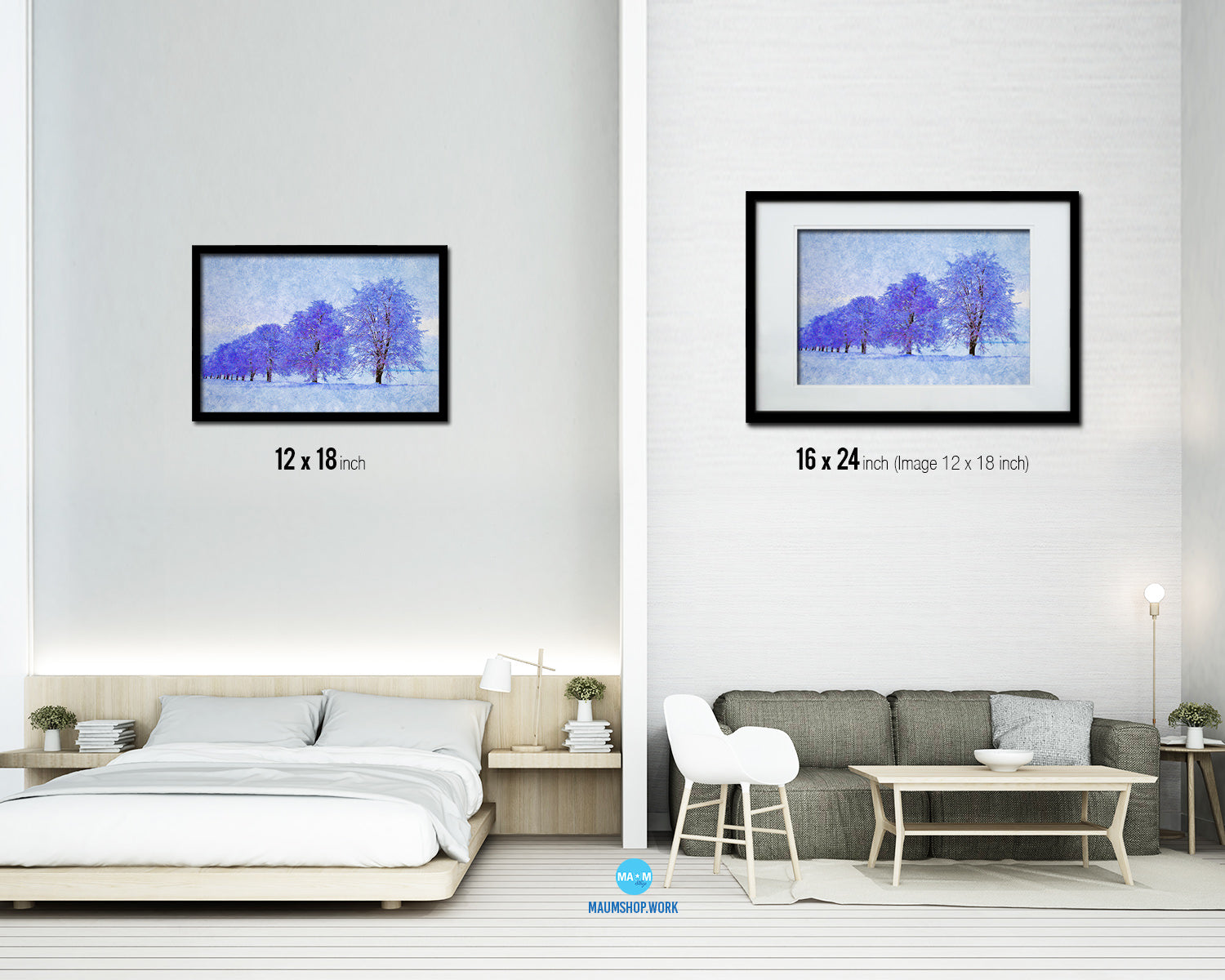 Snow Purple Tree Artwork Painting Print Art Frame Home Wall Decor Gifts