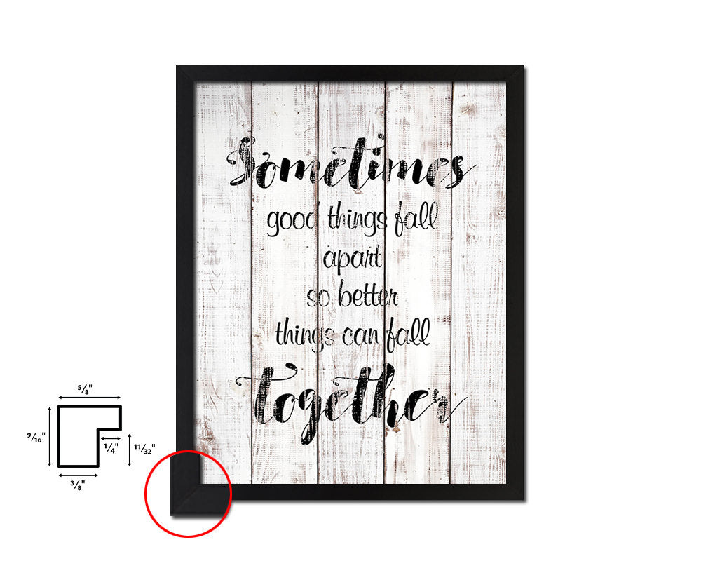 Sometimes good things fall apart White Wash Quote Framed Print Wall Decor Art