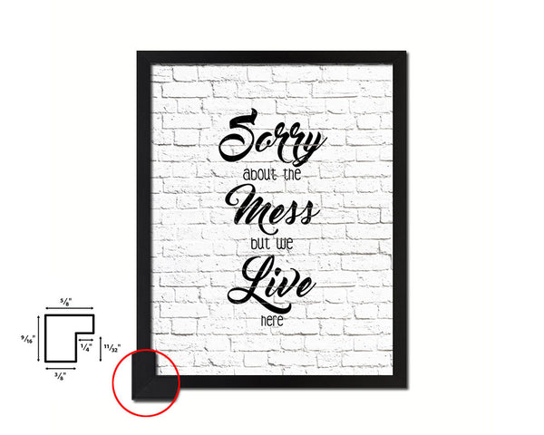 Sorry about the mess but we live here Quote Framed Print Home Decor Wall Art Gifts