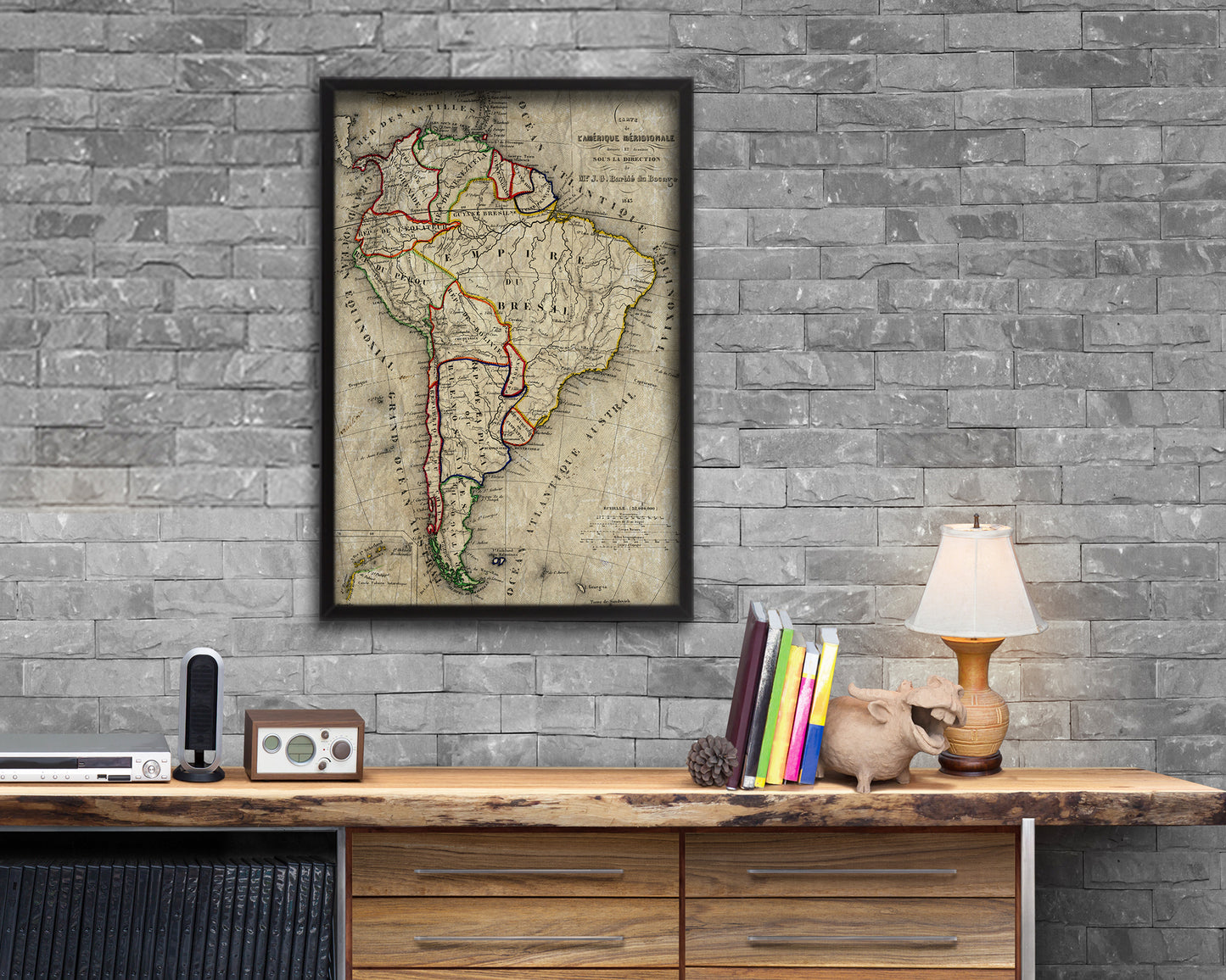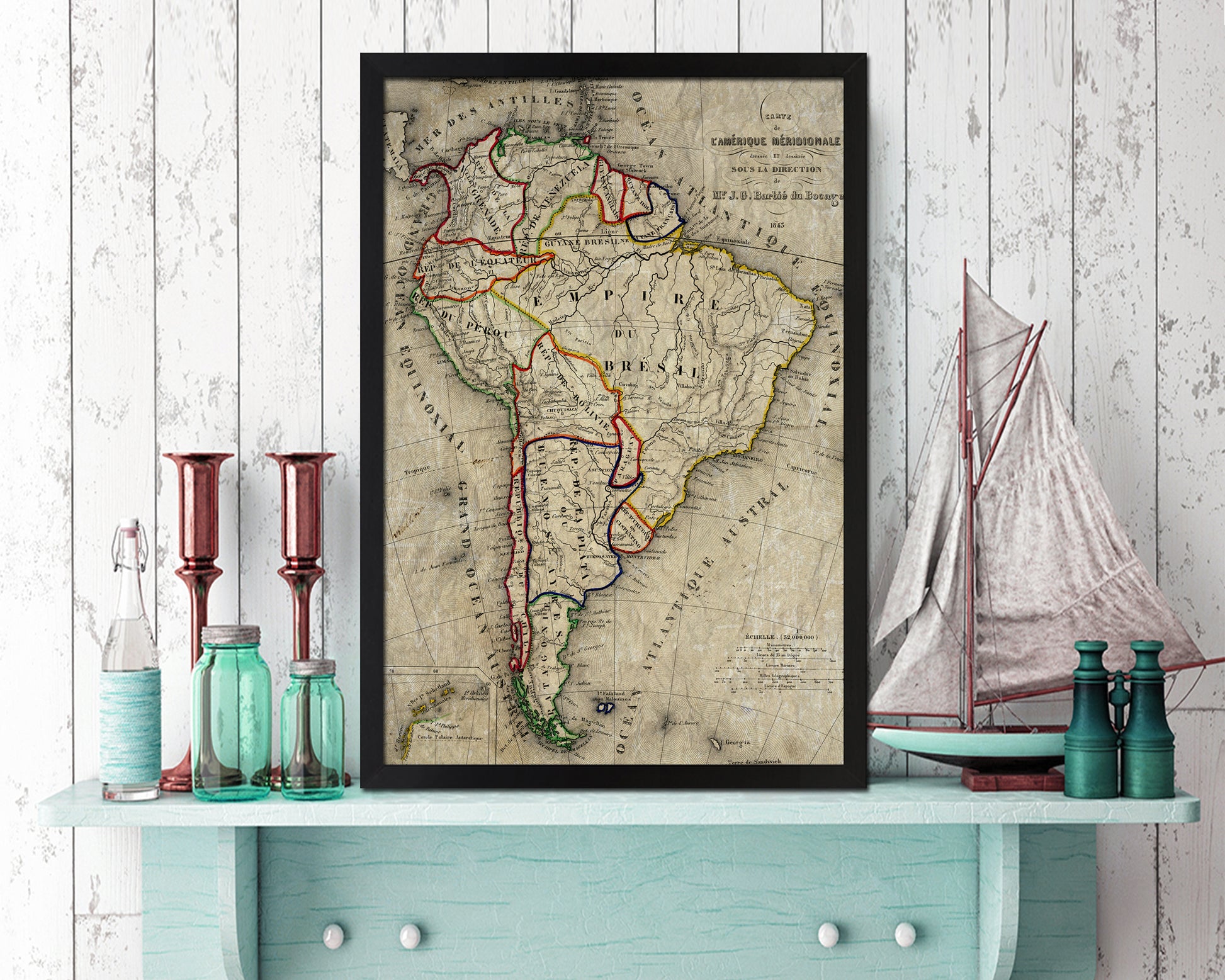South America 1894 Historical Map Wood Framed Print Art Wall Decor Gifts