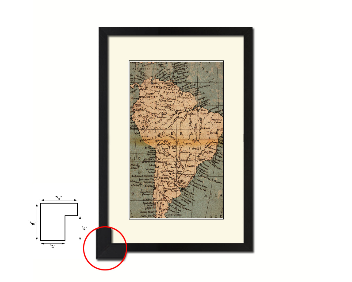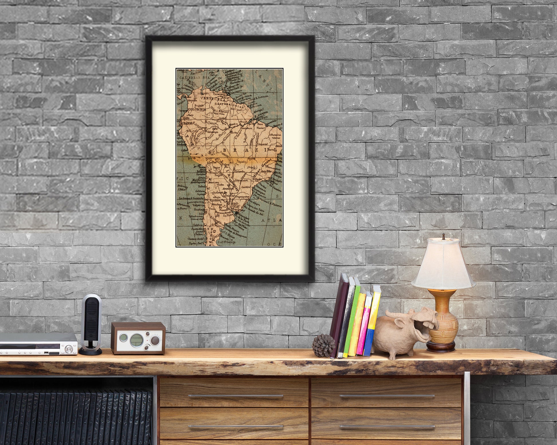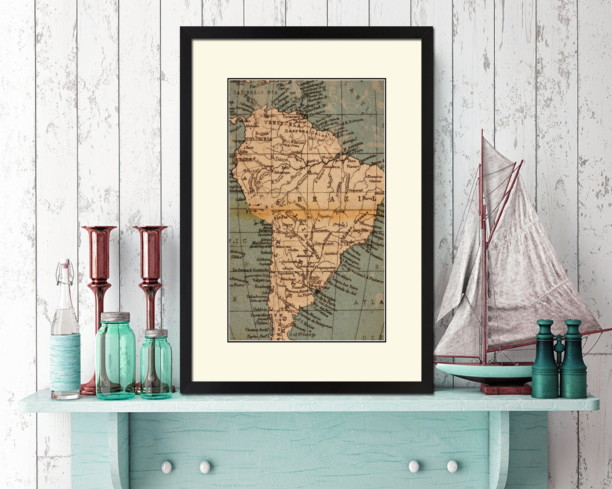 South America Old Map Wood Framed Print Art Wall Decor Gifts