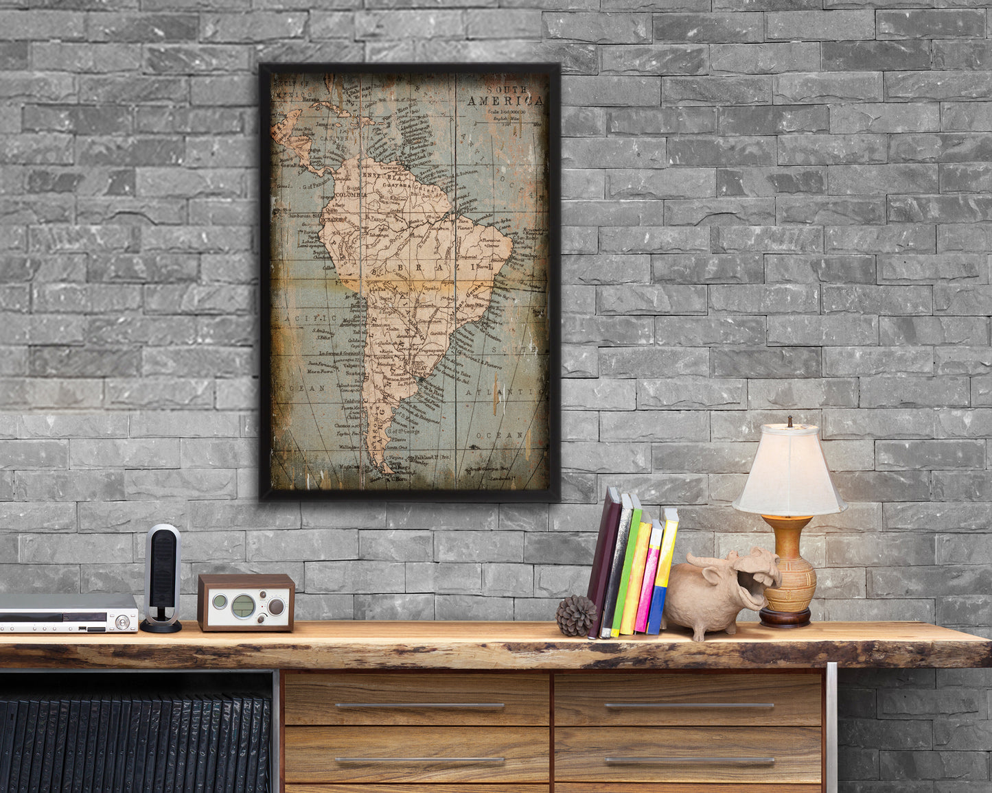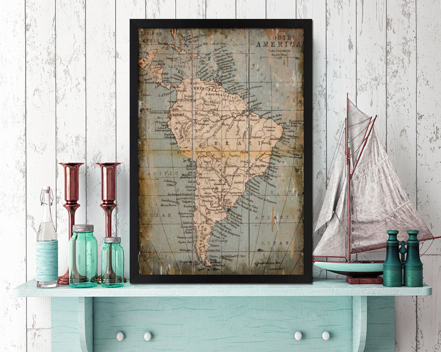 South America Antique Map Wood Framed Print Art Wall Decor Gifts