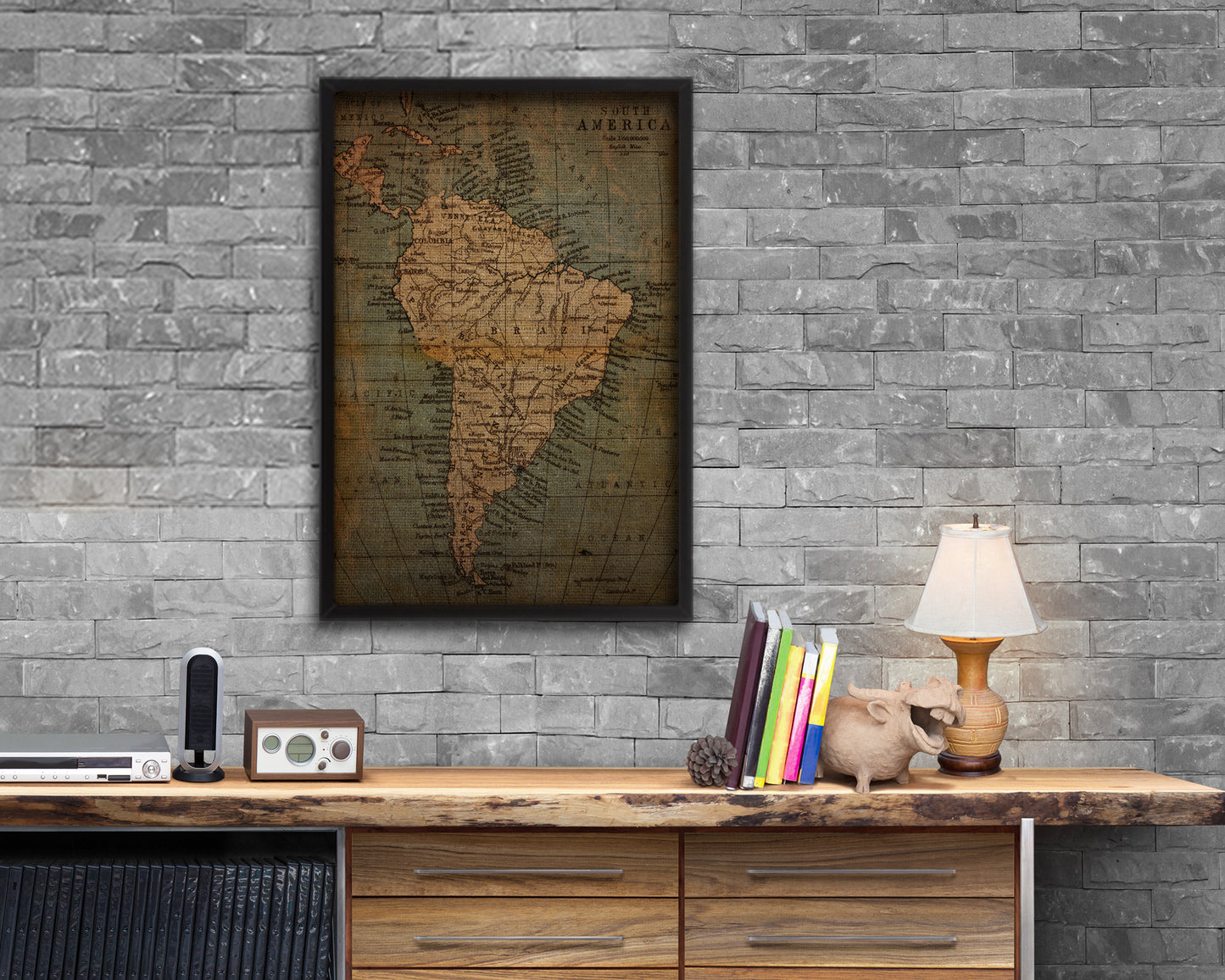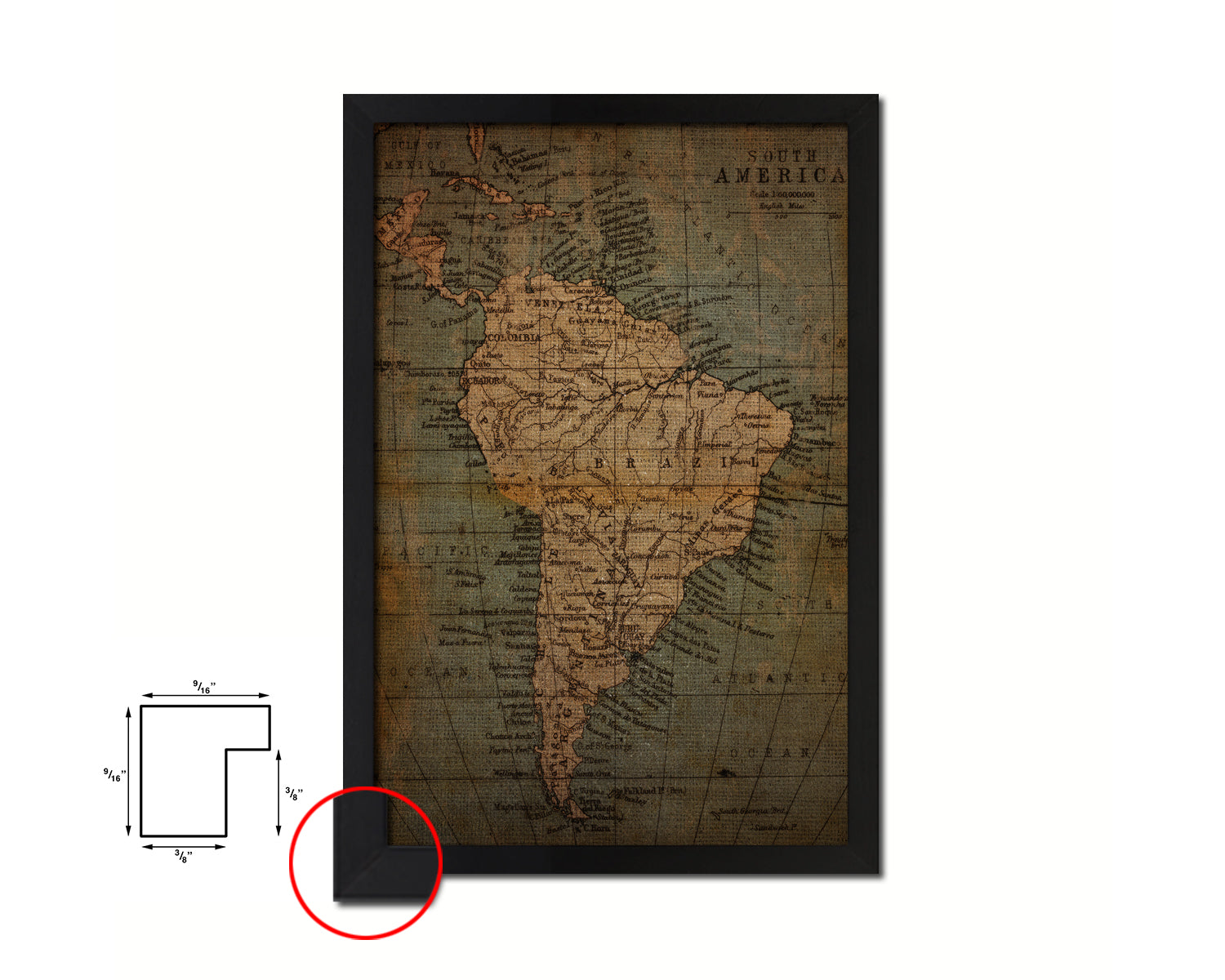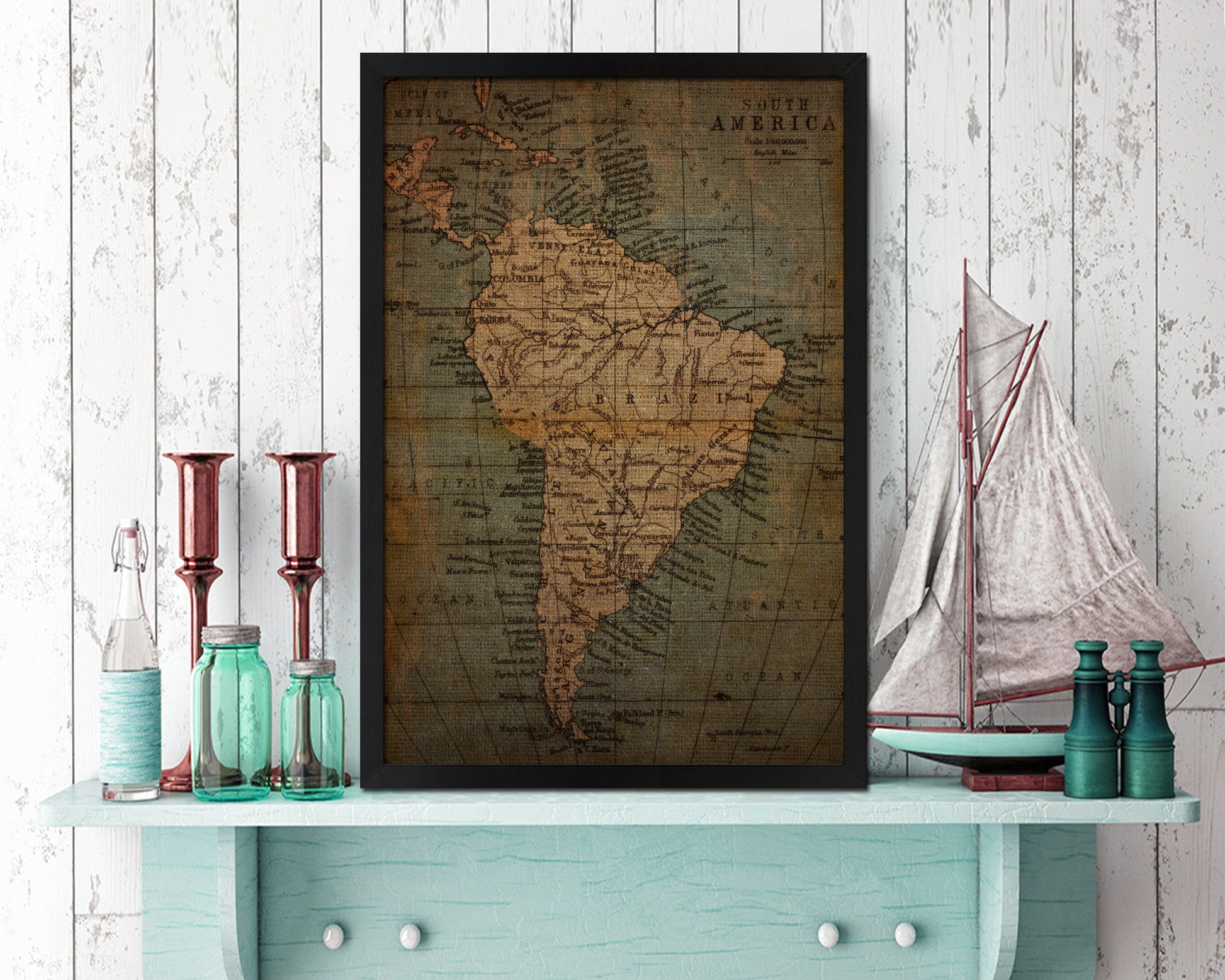 South America Vintage Map Wood Framed Print Art Wall Decor Gifts