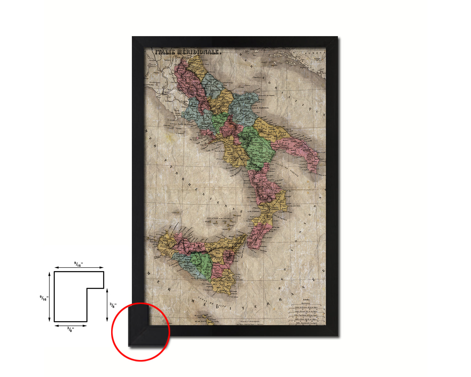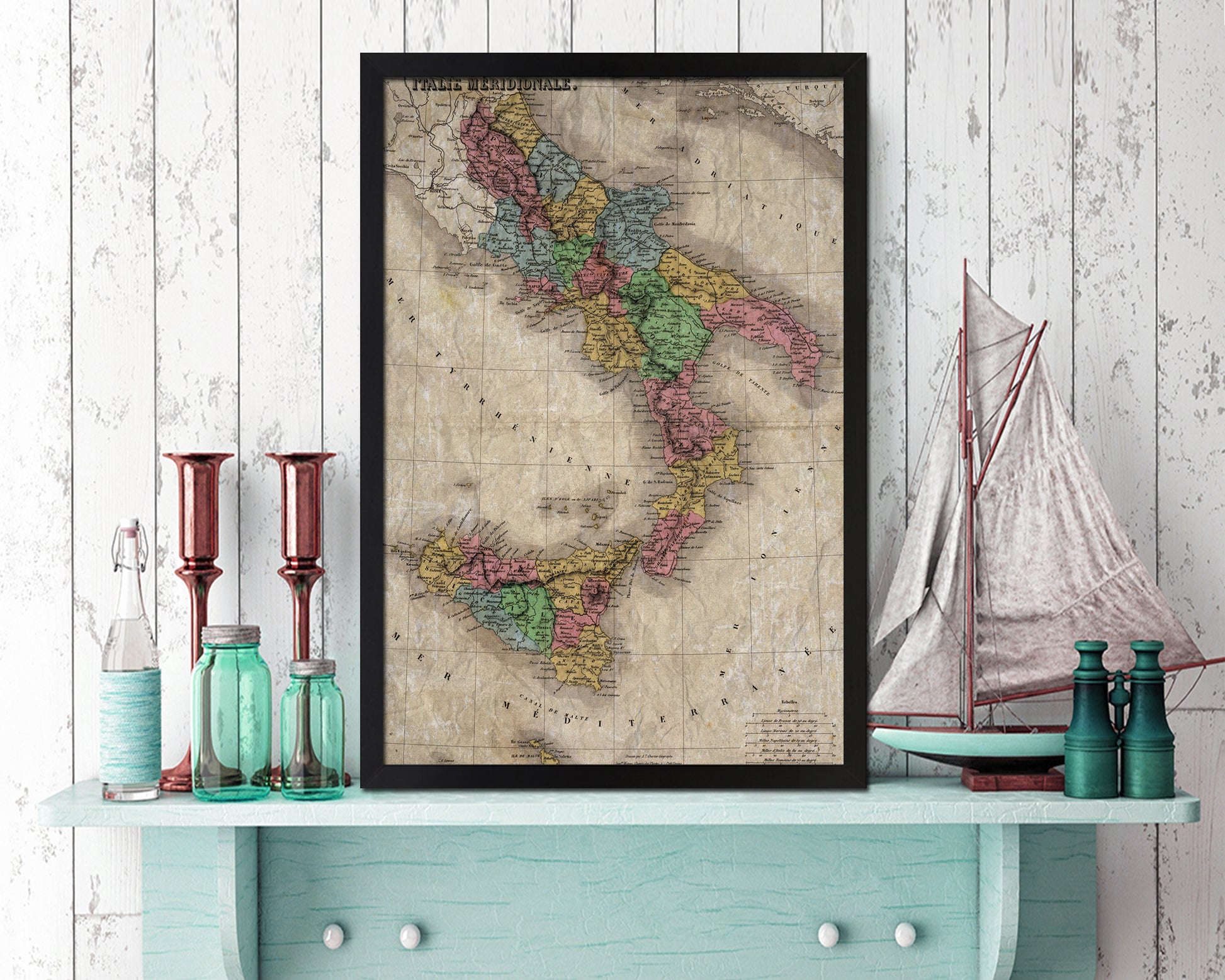 South Italy Historical Map Wood Framed Print Art Wall Decor Gifts