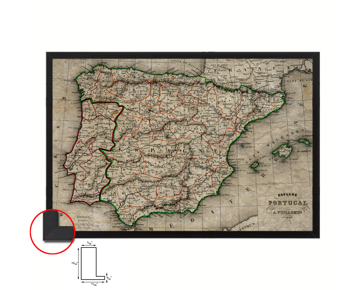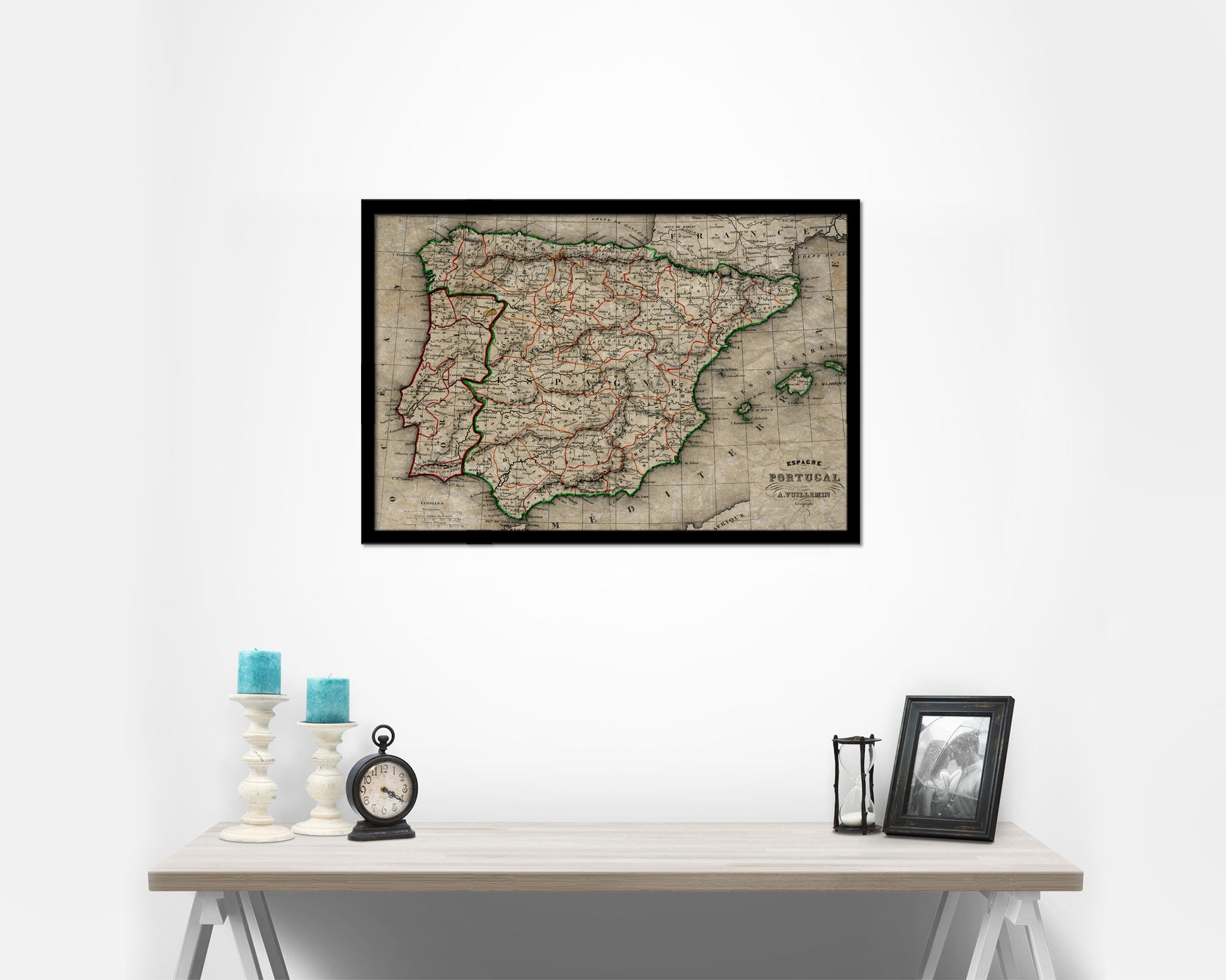 Spain and Portugal 1846 Historical Map Framed Print Art Wall Decor Gifts