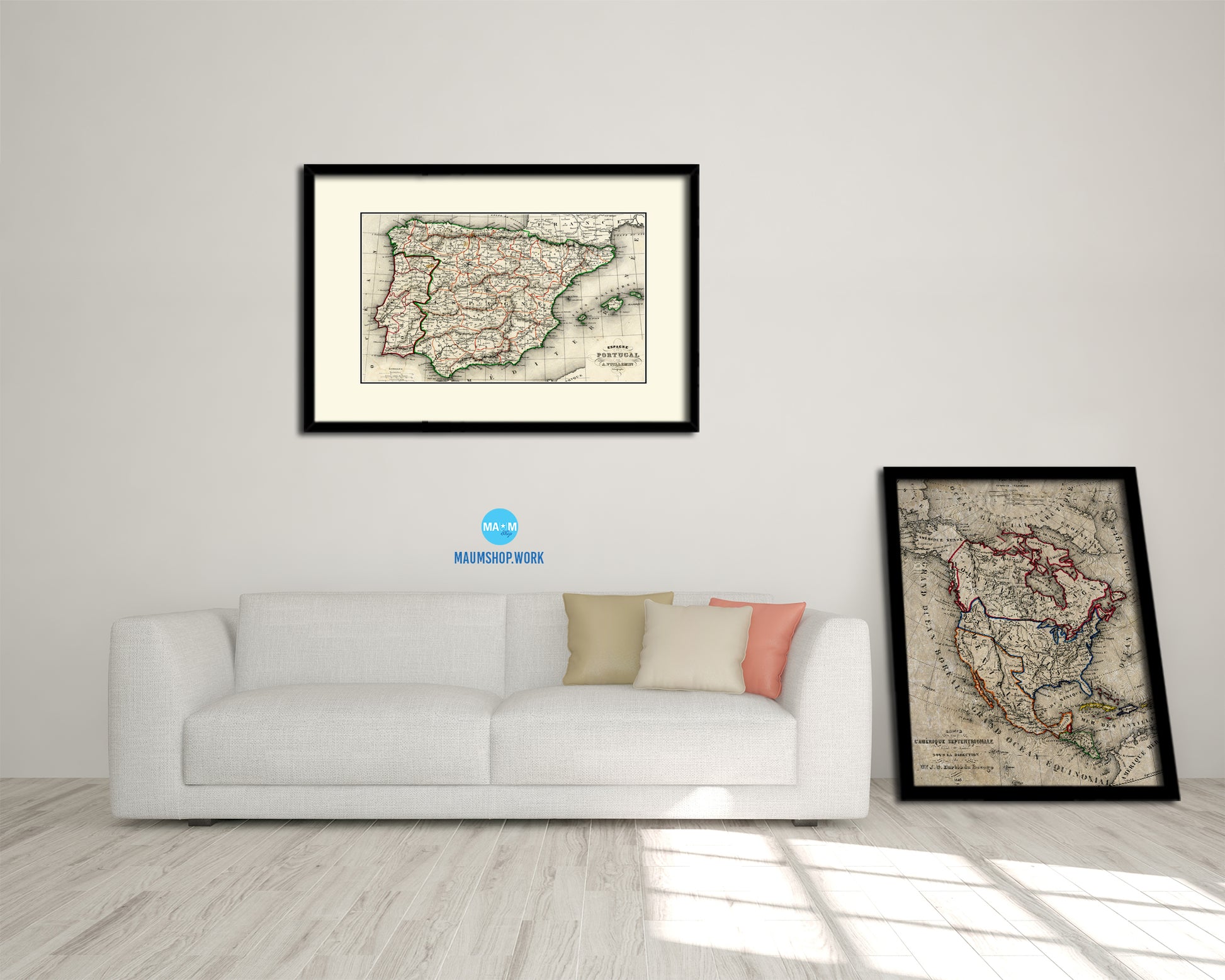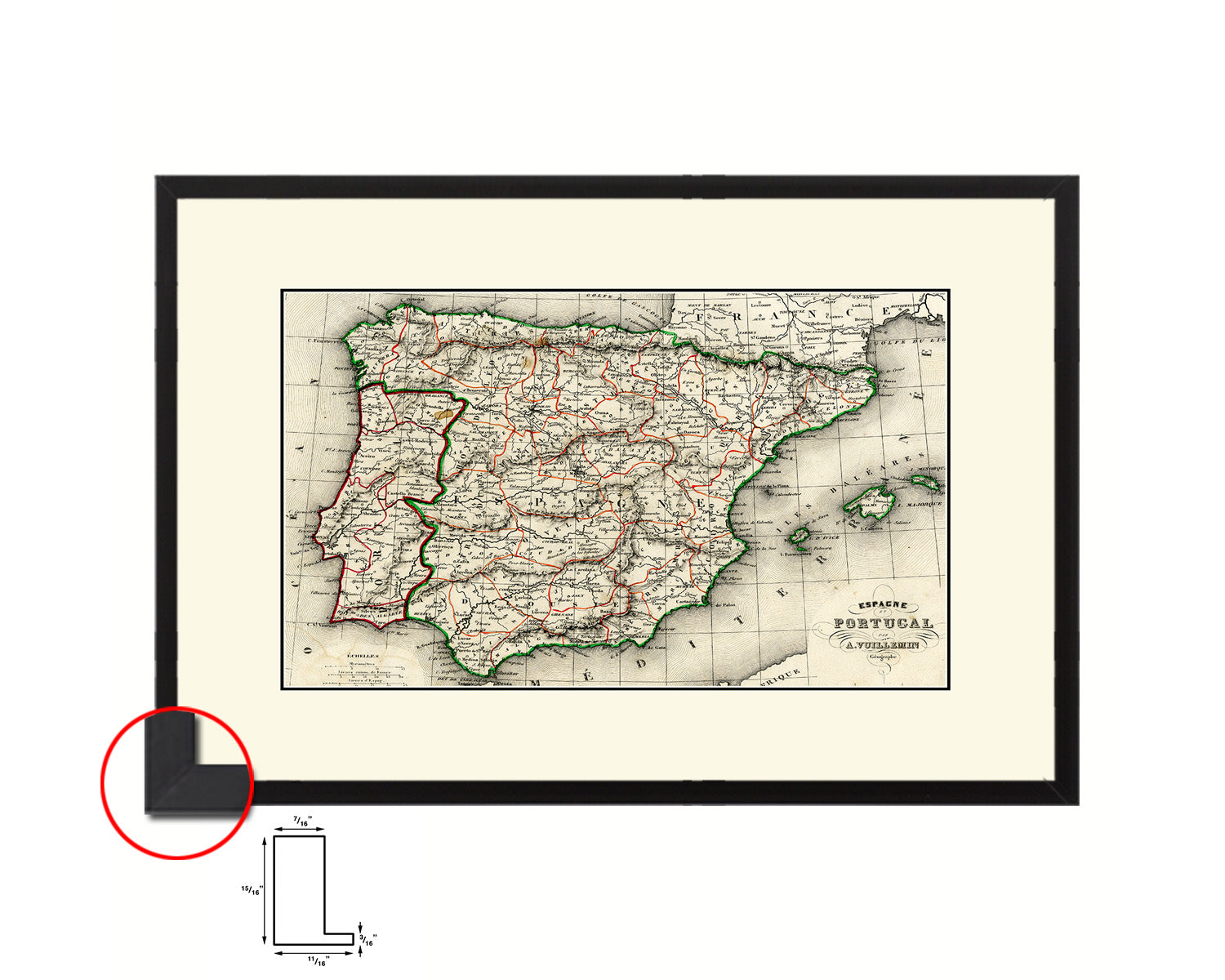 Spain and Portugal 1846 Old Map Framed Print Art Wall Decor Gifts