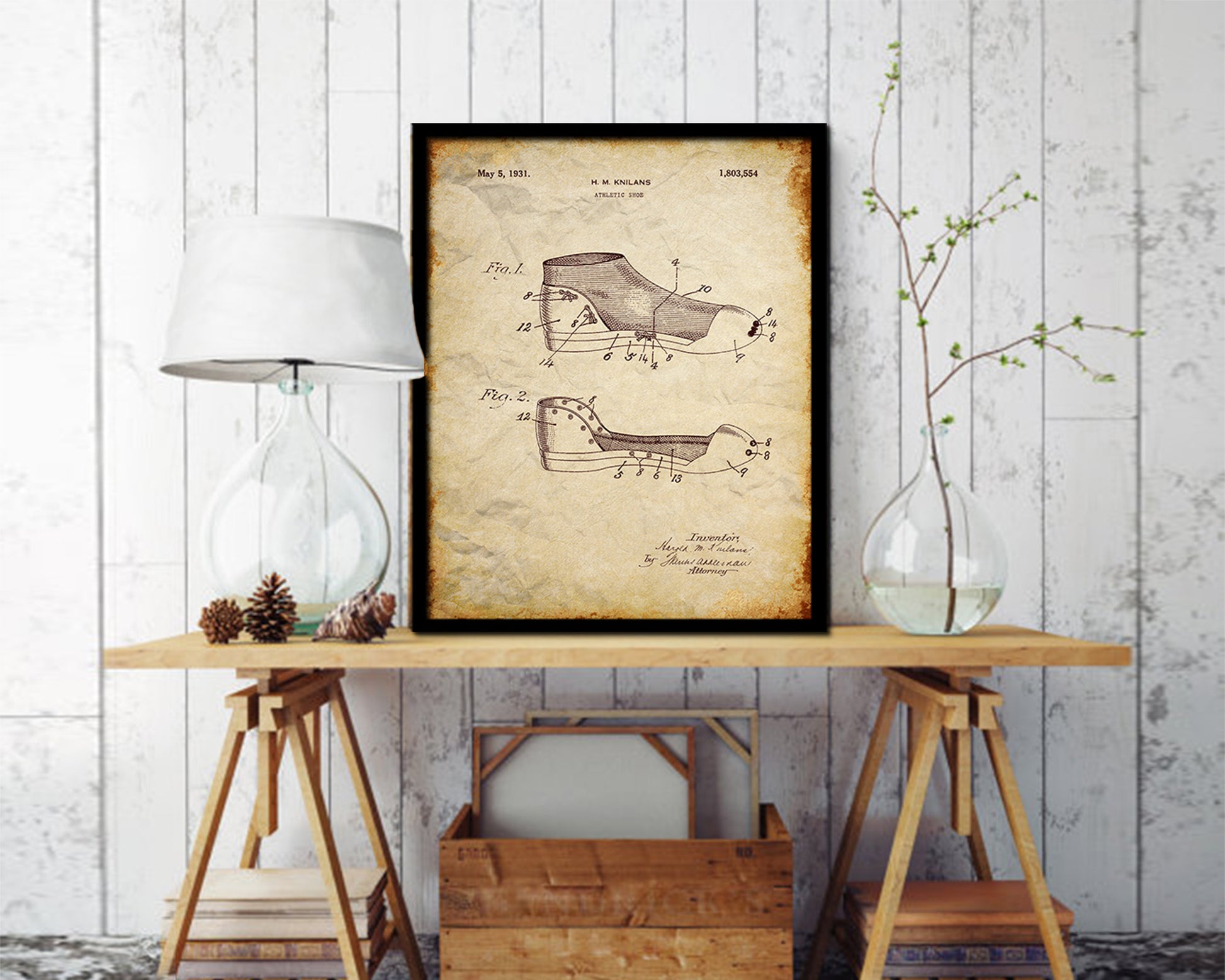 Basketball Athletic Shoe Sports Vintage Patent Artwork Walnut Frame Gifts