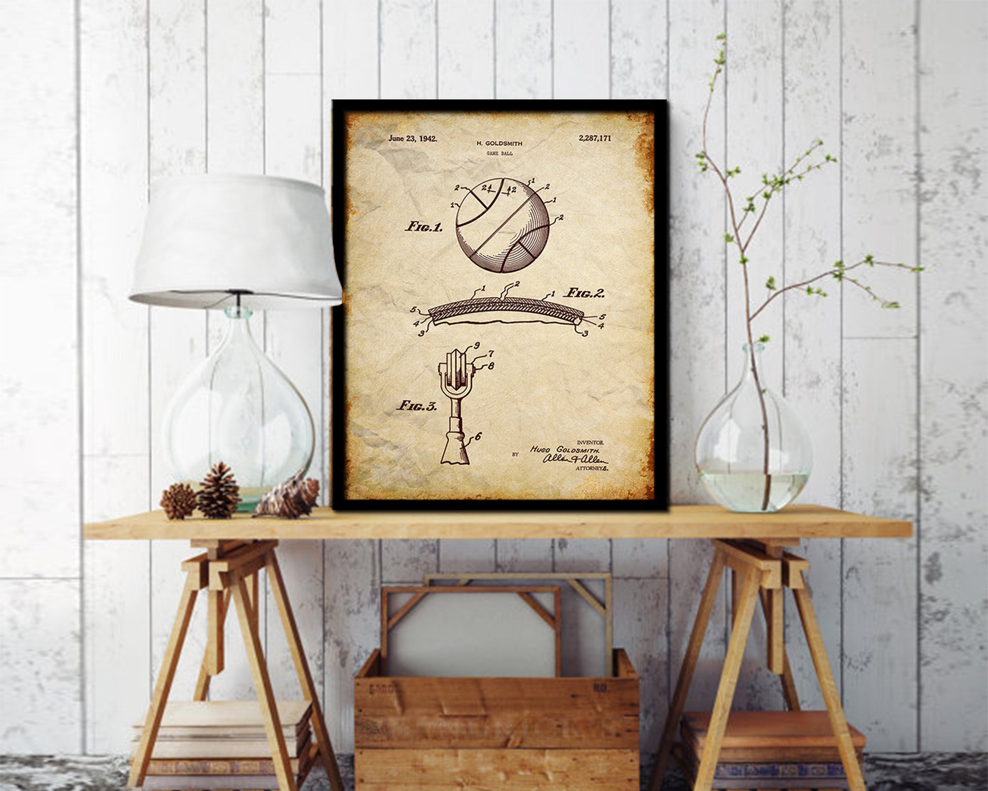 Basketball Game Ball Sports Vintage Patent Artwork Walnut Frame Gifts