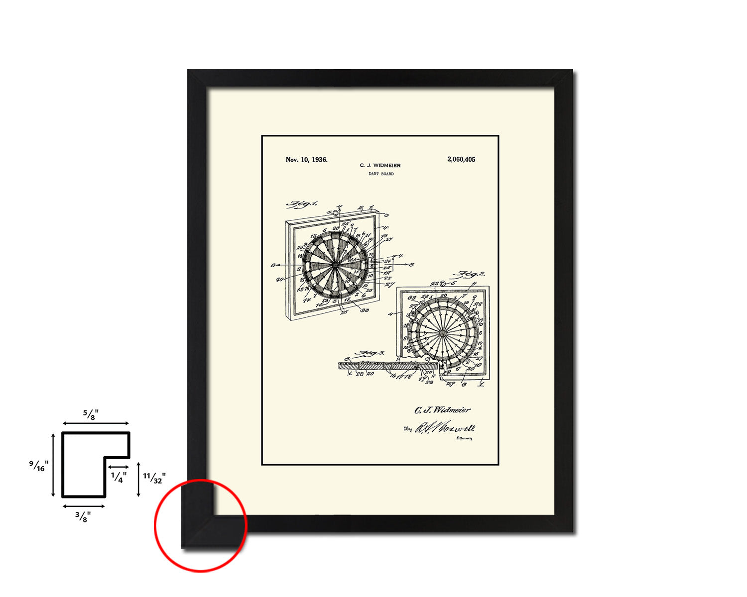 Dart Board Sports Vintage Patent Artwork Black Frame Print Gifts