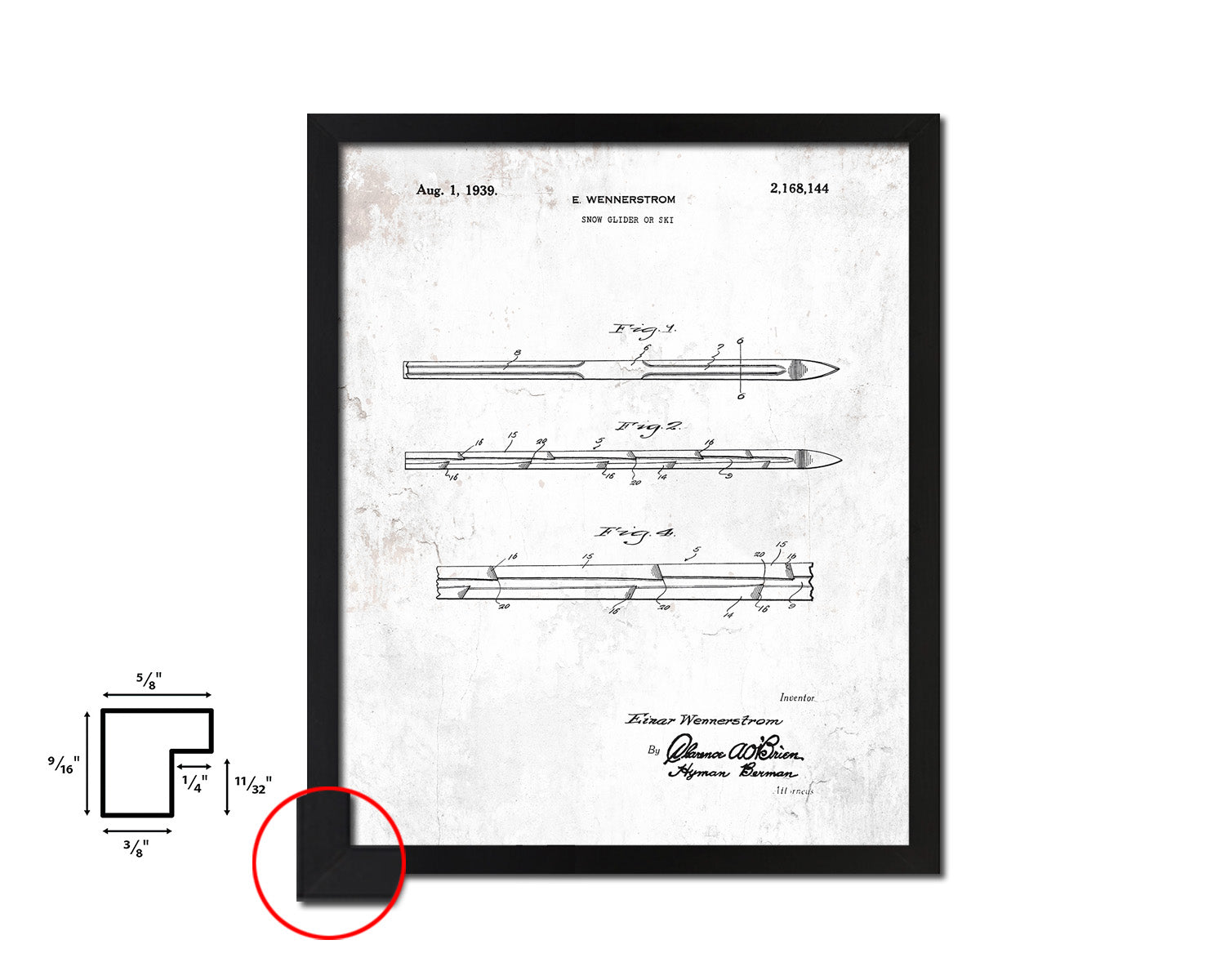 Ski Sports Vintage Patent Artwork Black Frame Print Gifts
