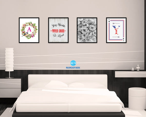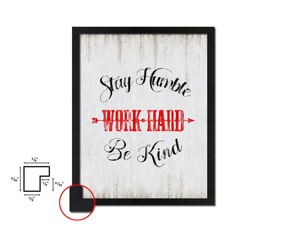 Stay humble work hard be kind Quote Wood Framed Print Wall Decor Art