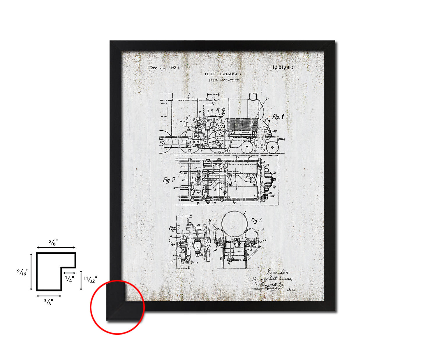 Steam Locomotive Engine Train Vintage Patent Artwork Black Frame Print Gifts
