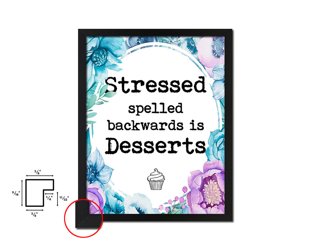 Stressed spelled backwards is desserts Quote Boho Flower Framed Print Wall Decor Art