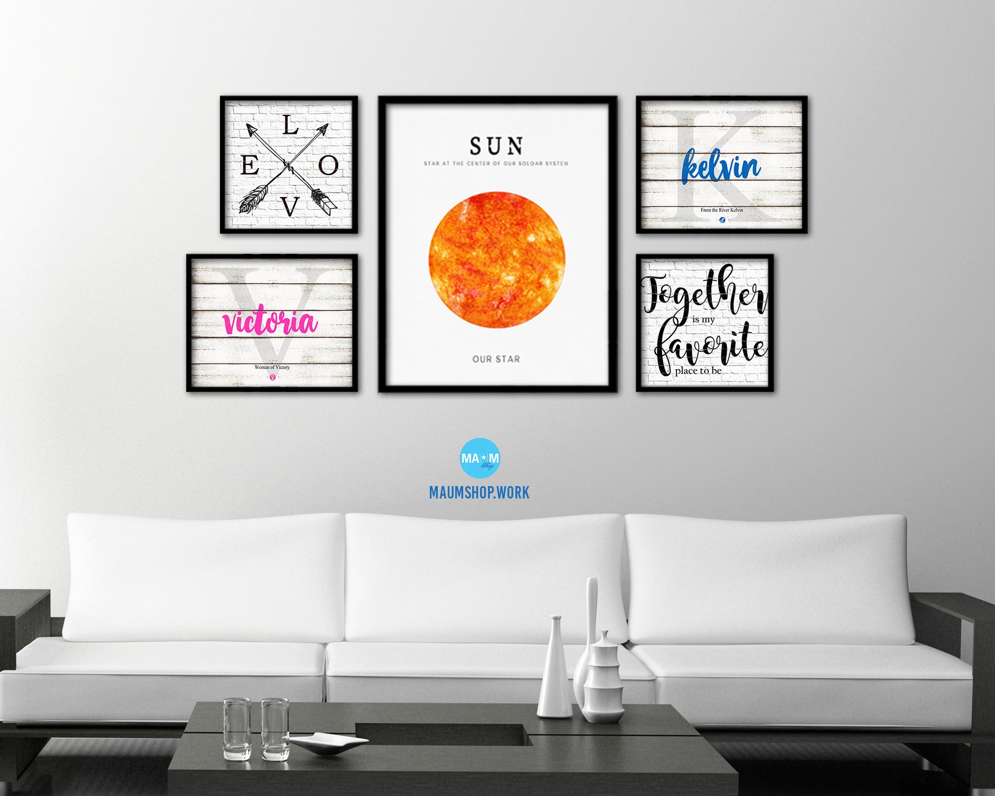 Sun Planet Prints Watercolor Solar System Wood Framed Paper Print Wall Art Decor Gifts