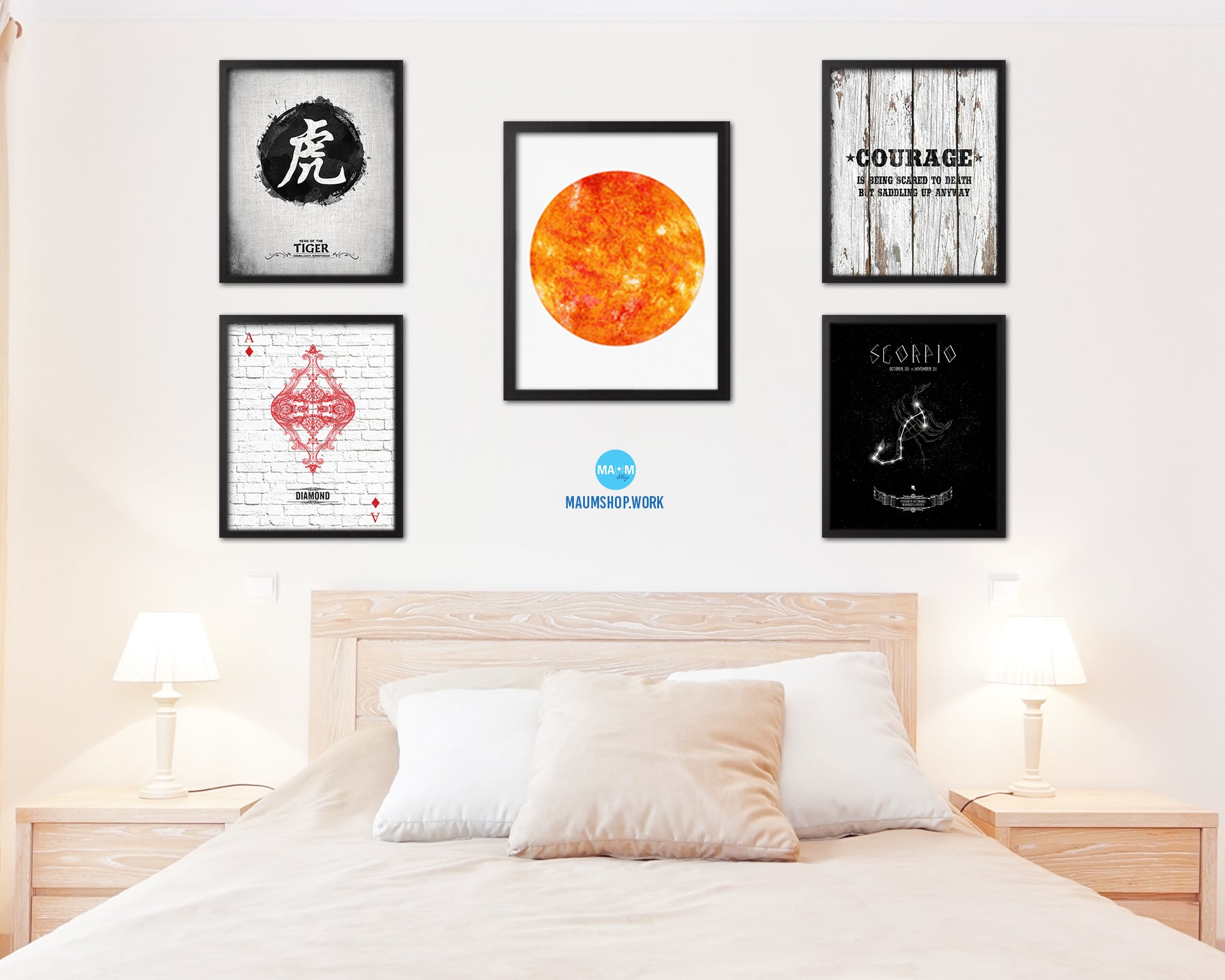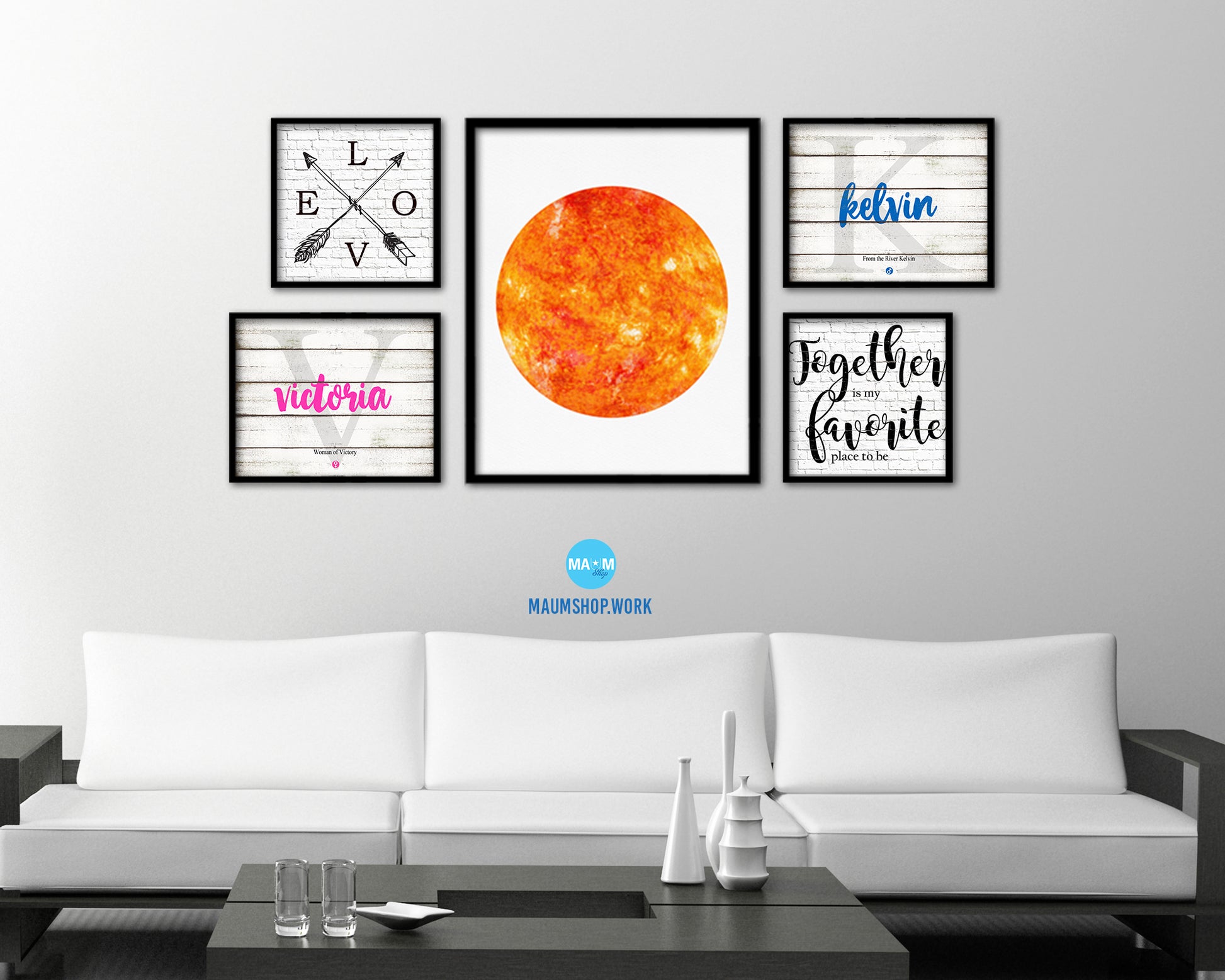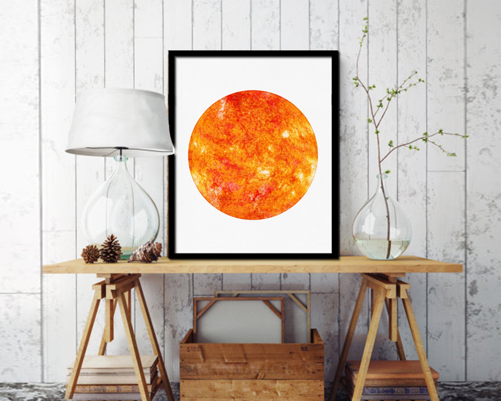 Sun Planet Prints Watercolor Solar System Wood Framed Paper Print Wall Art Decor Gifts
