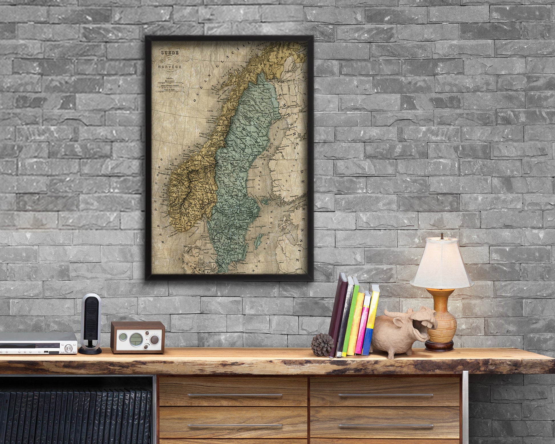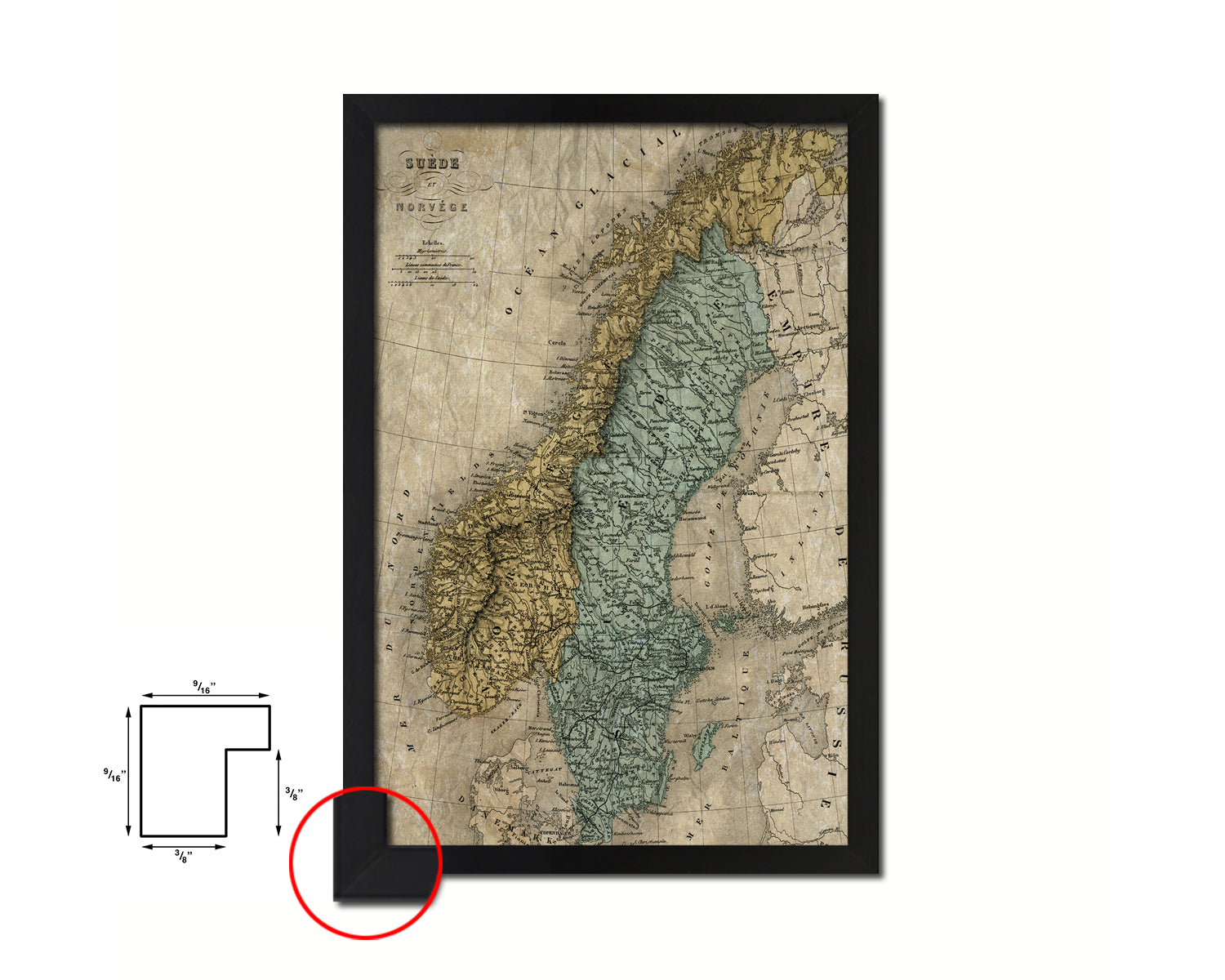 Sweden and Norway Historical Map Wood Framed Print Art Wall Decor Gifts