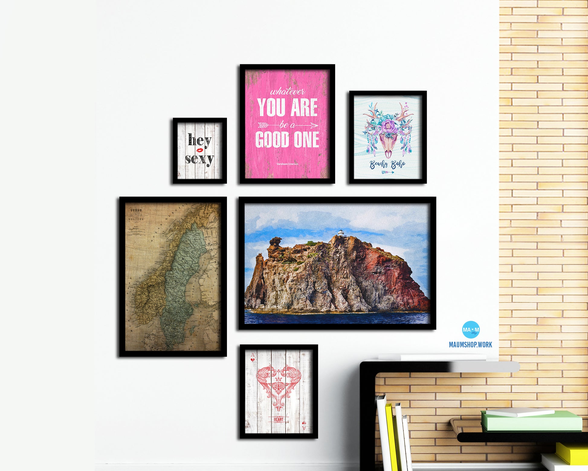 Sweden and Norway Vintage Map Wood Framed Print Art Wall Decor Gifts