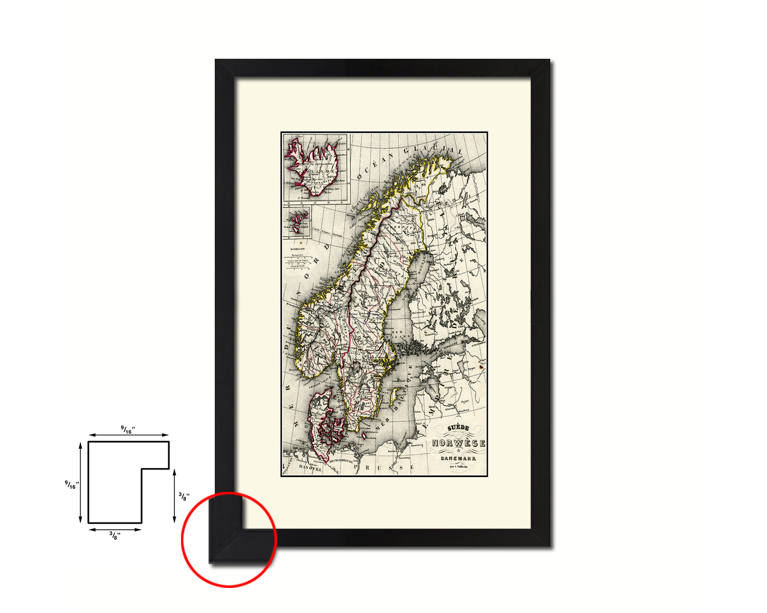 Sweden Norway Scandinavia Old Map Wood Framed Print Art Wall Decor Gifts