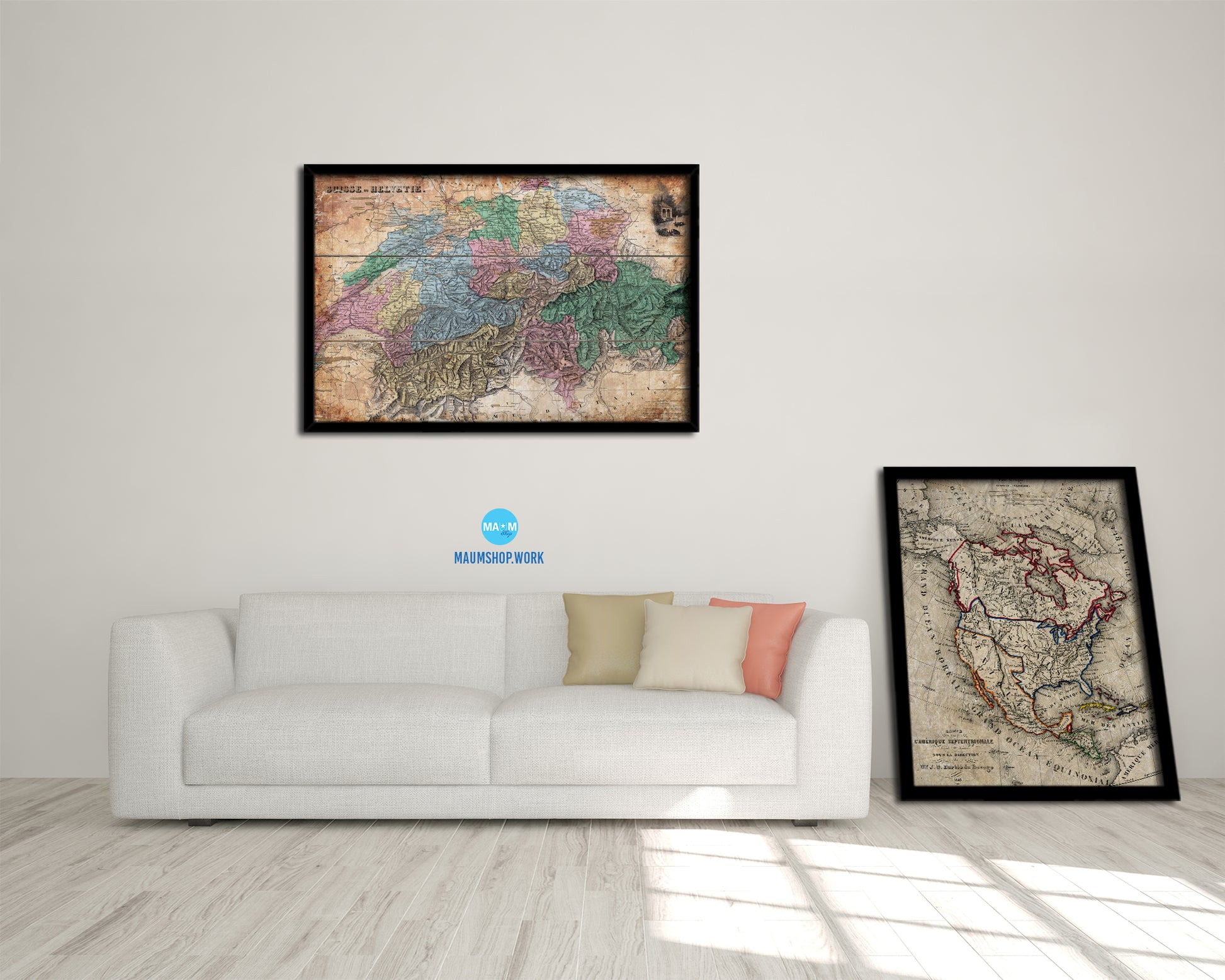 Switzerland the 19th Century Trousset Encyclopedia 1886-1891 Antique Map Print Art Frame
