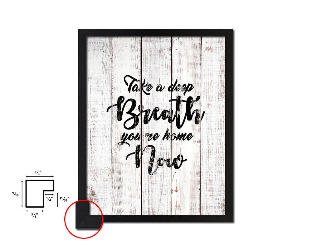 Take a deep breath, you're home now White Wash Quote Framed Print Wall Decor Art