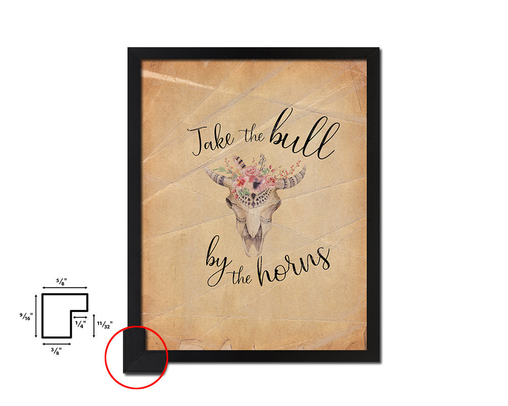 Take the bull by the horns Quote Paper Artwork Framed Print Wall Decor Art