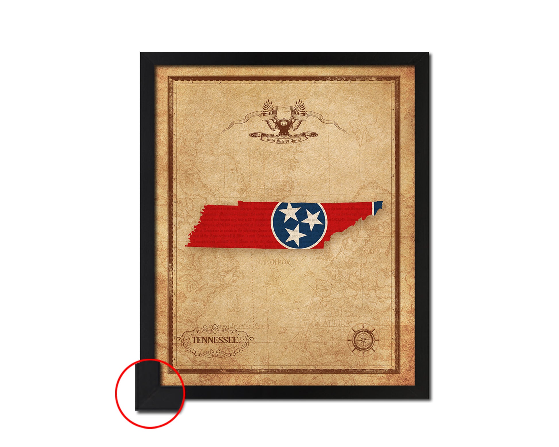 Tennessee State Vintage Map Wood Framed Paper Print Wall Art Decor Gifts