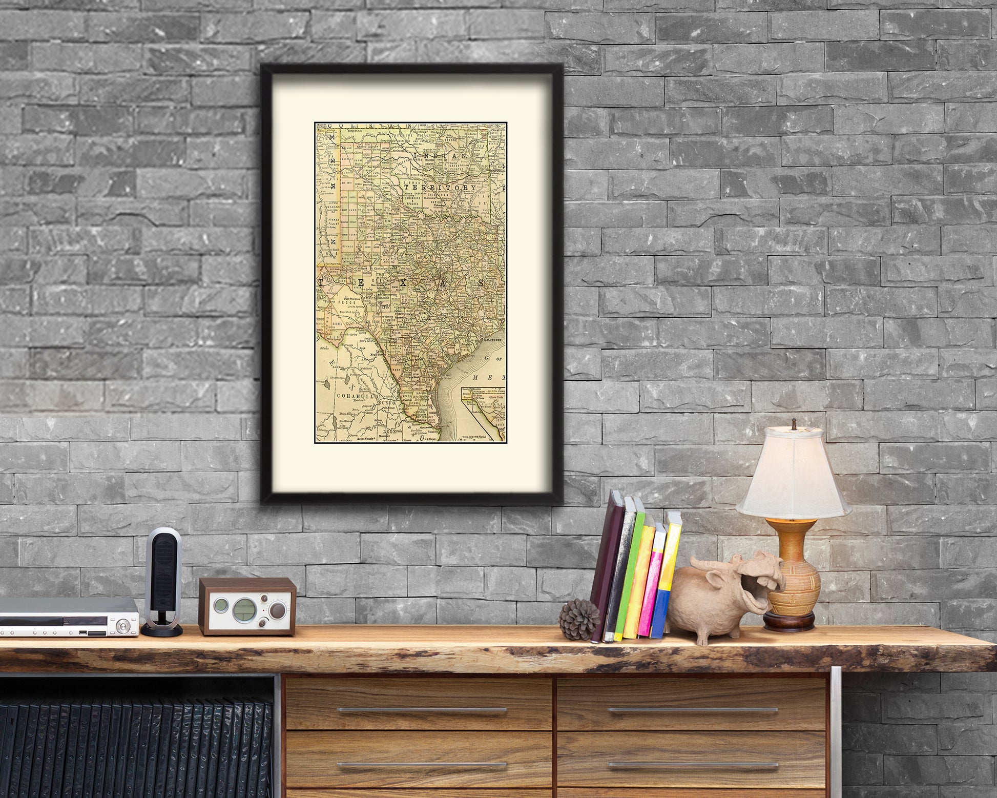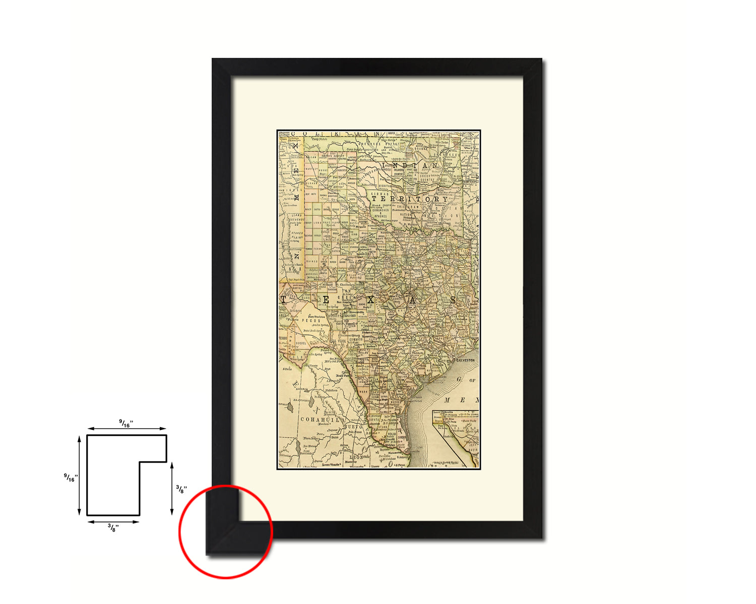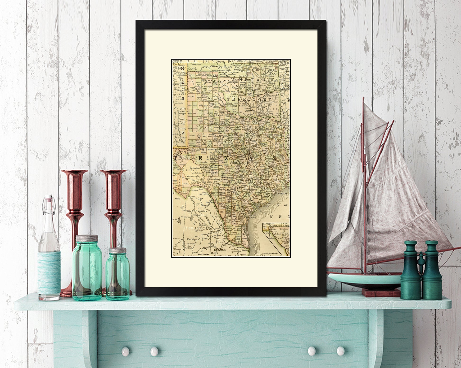 Texas with Oklahoma as Indian Territory Old Map Wood Framed Print Art Wall Decor Gifts