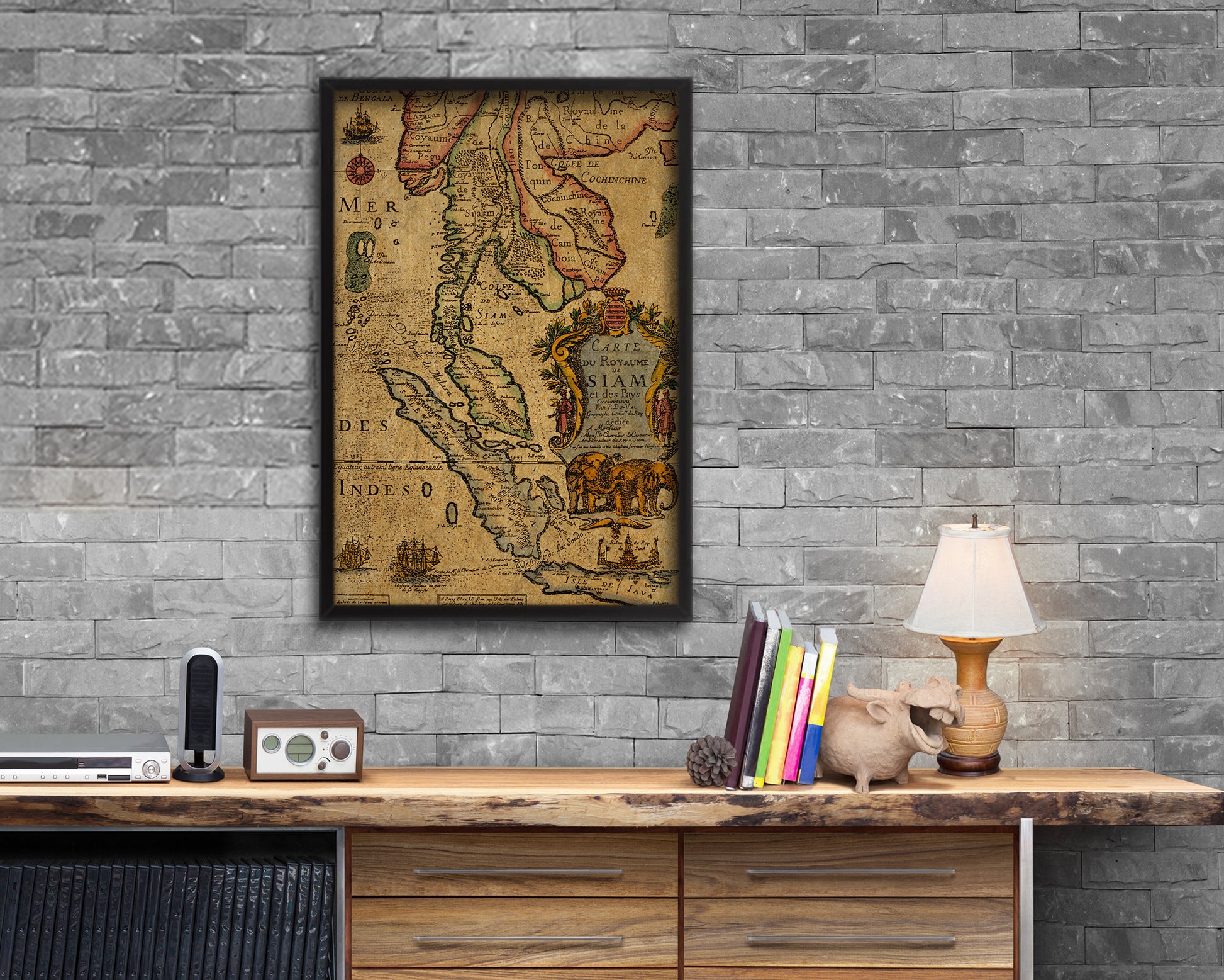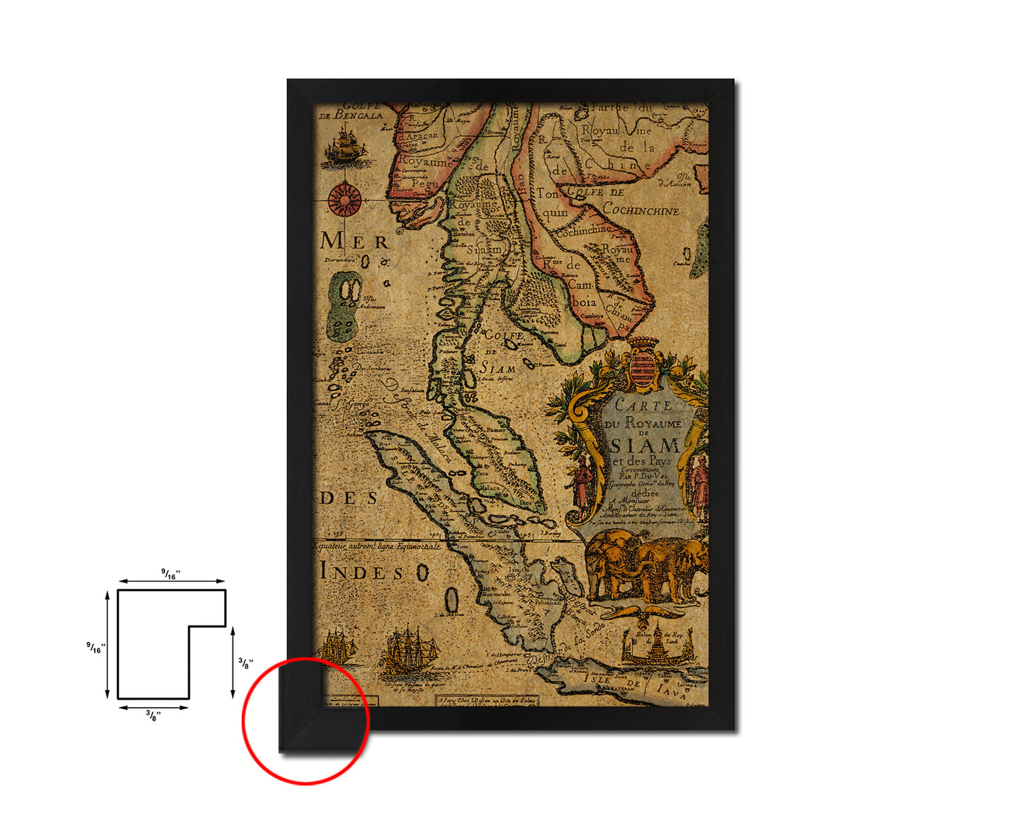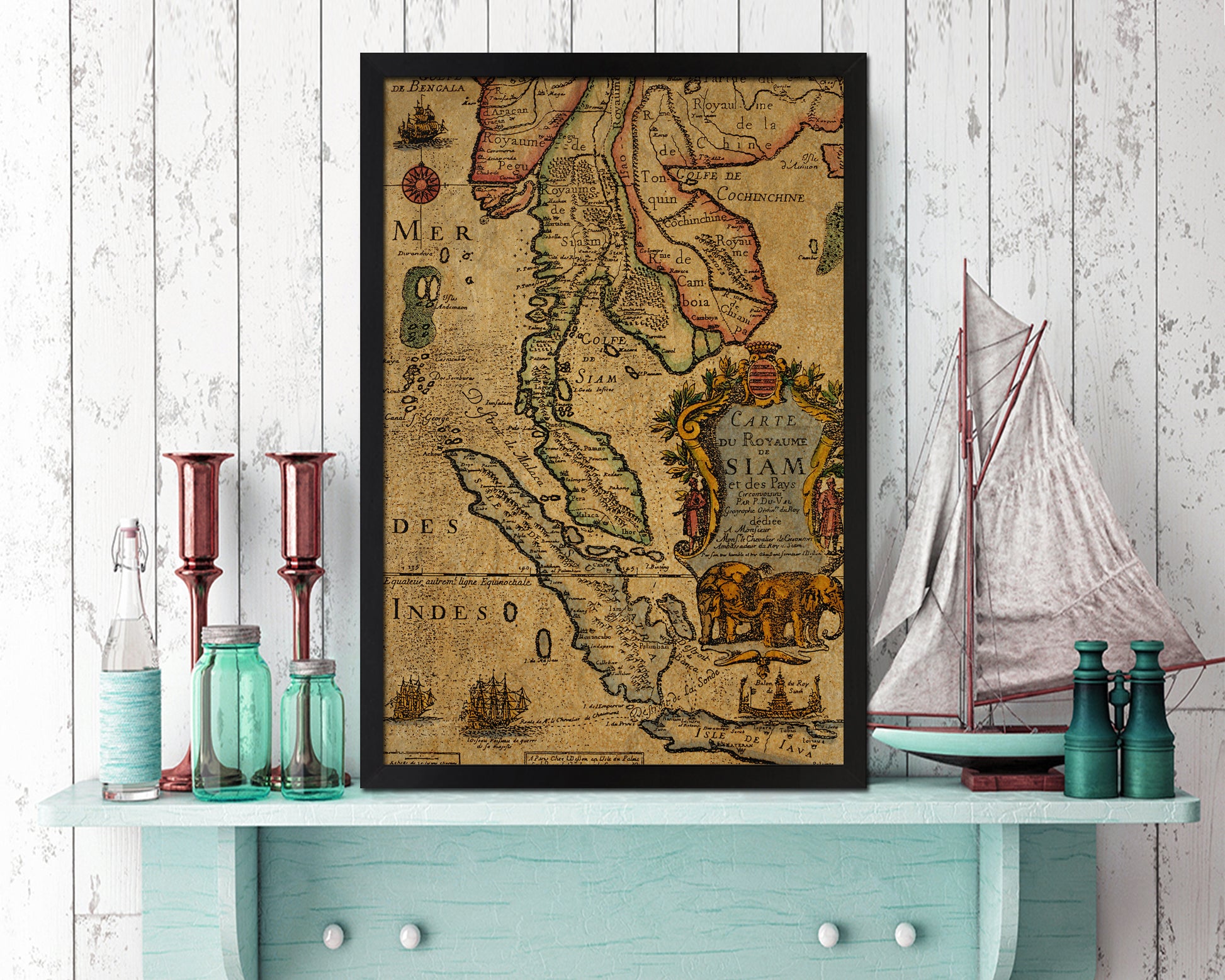 Thailand 17 Century Historical Map Wood Framed Print Art Wall Decor Gifts