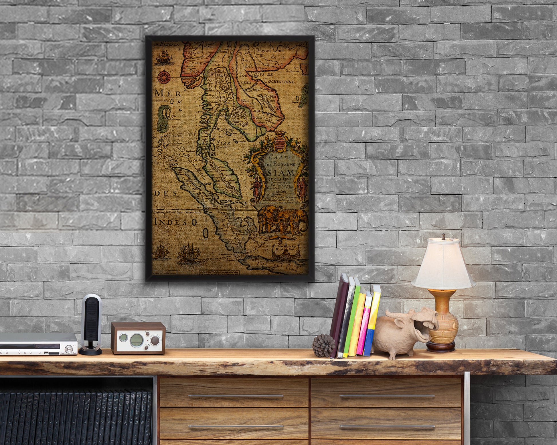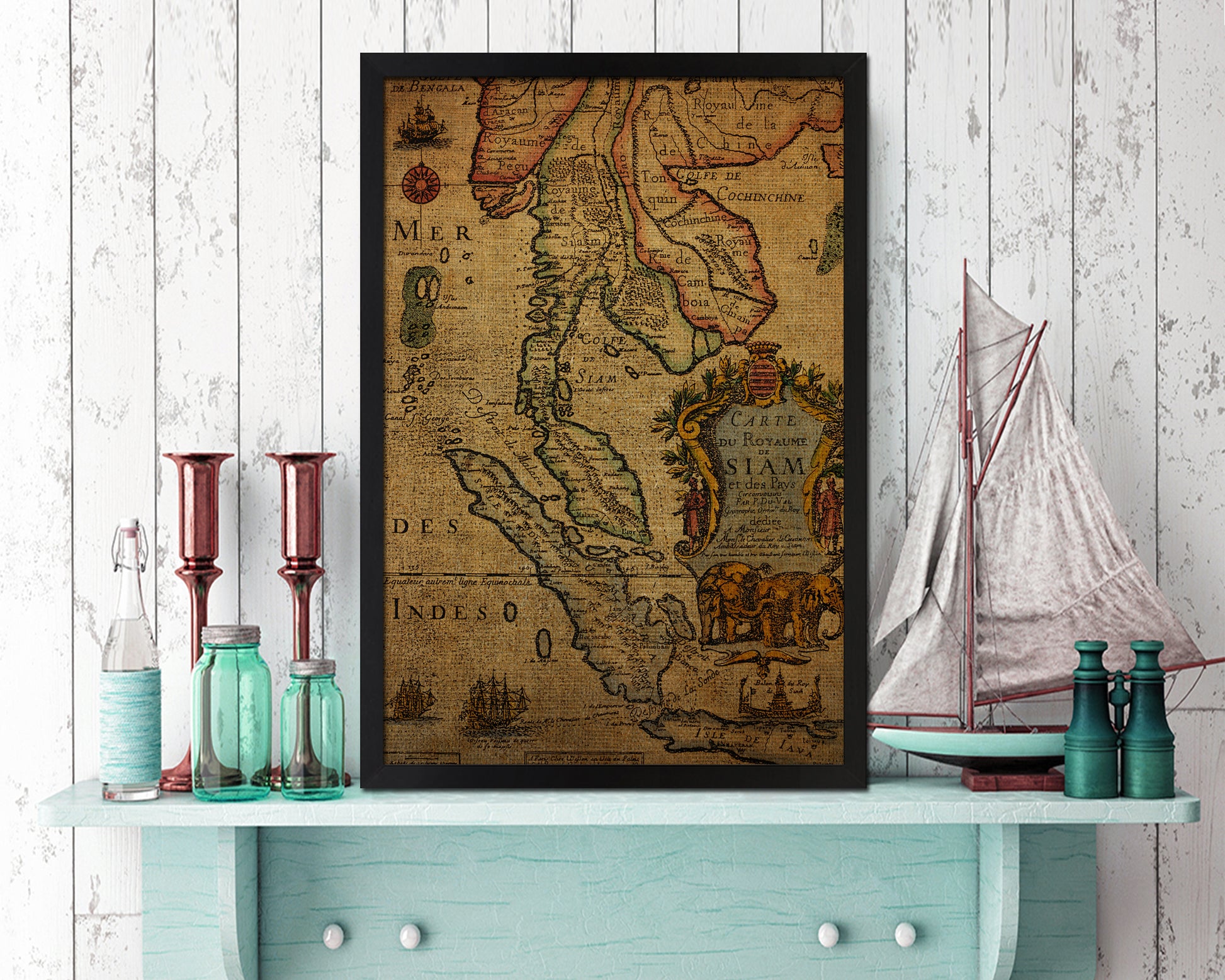 Thailand 17 Century Vintage Map Wood Framed Print Art Wall Decor Gifts