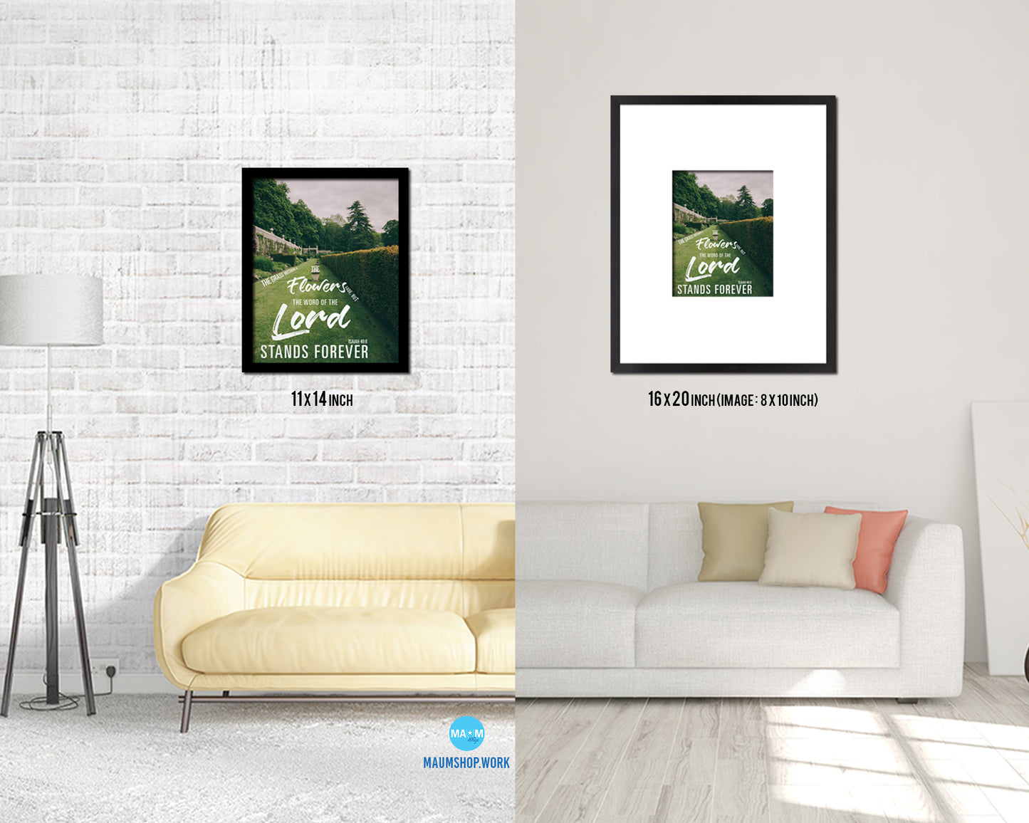 The grass withers & the flowers fade, Isaiah 40:8 Bible Verse Scripture Frame Print