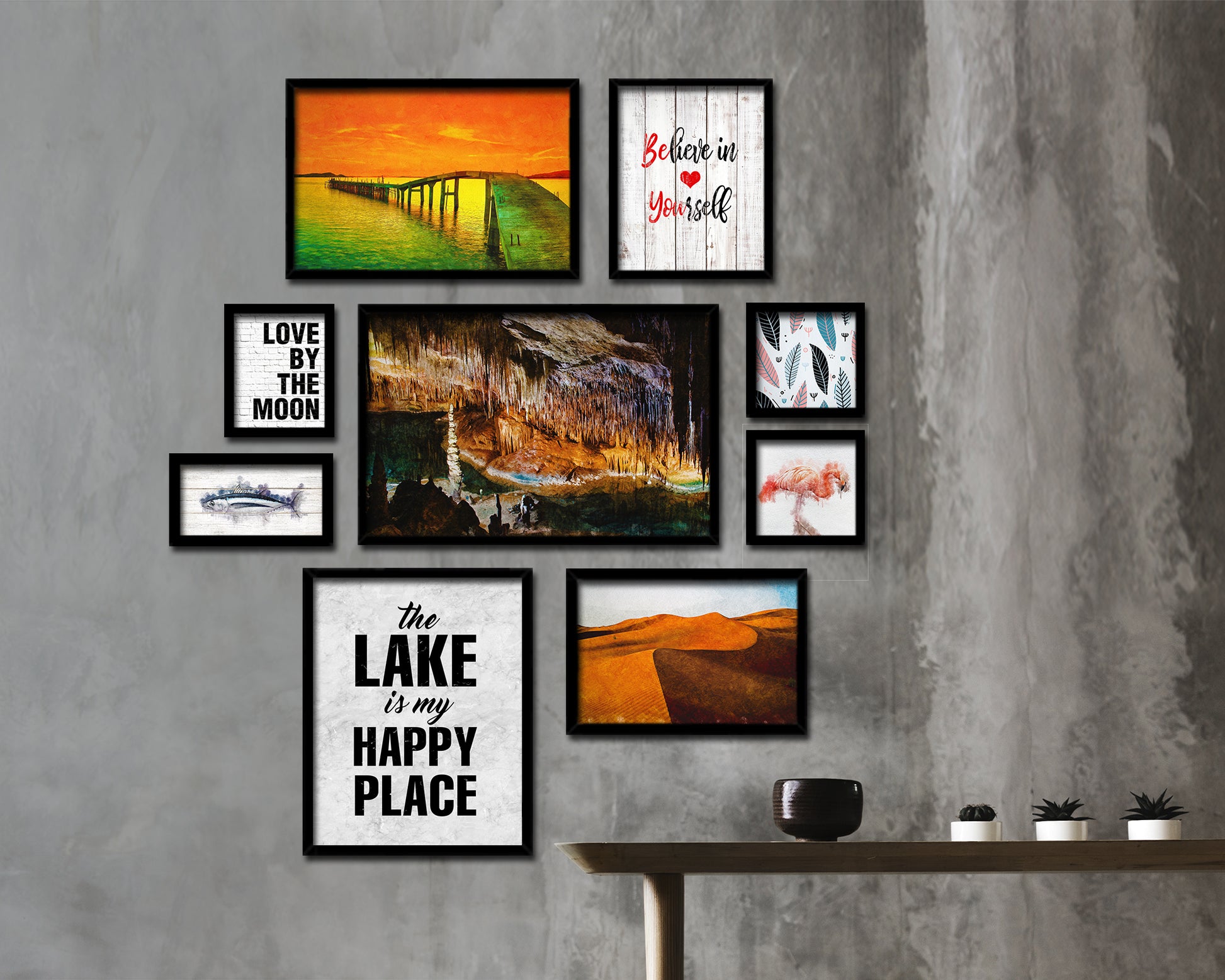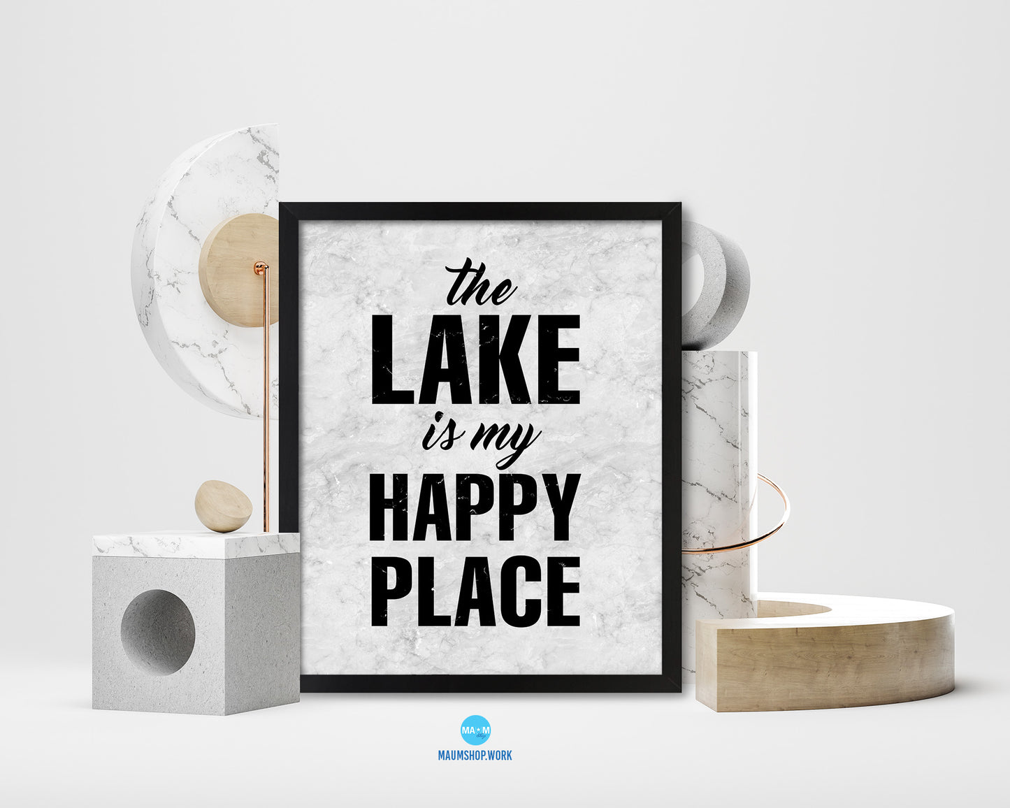The Lake is my happy place Quote Framed Print Wall Art Decor Gifts