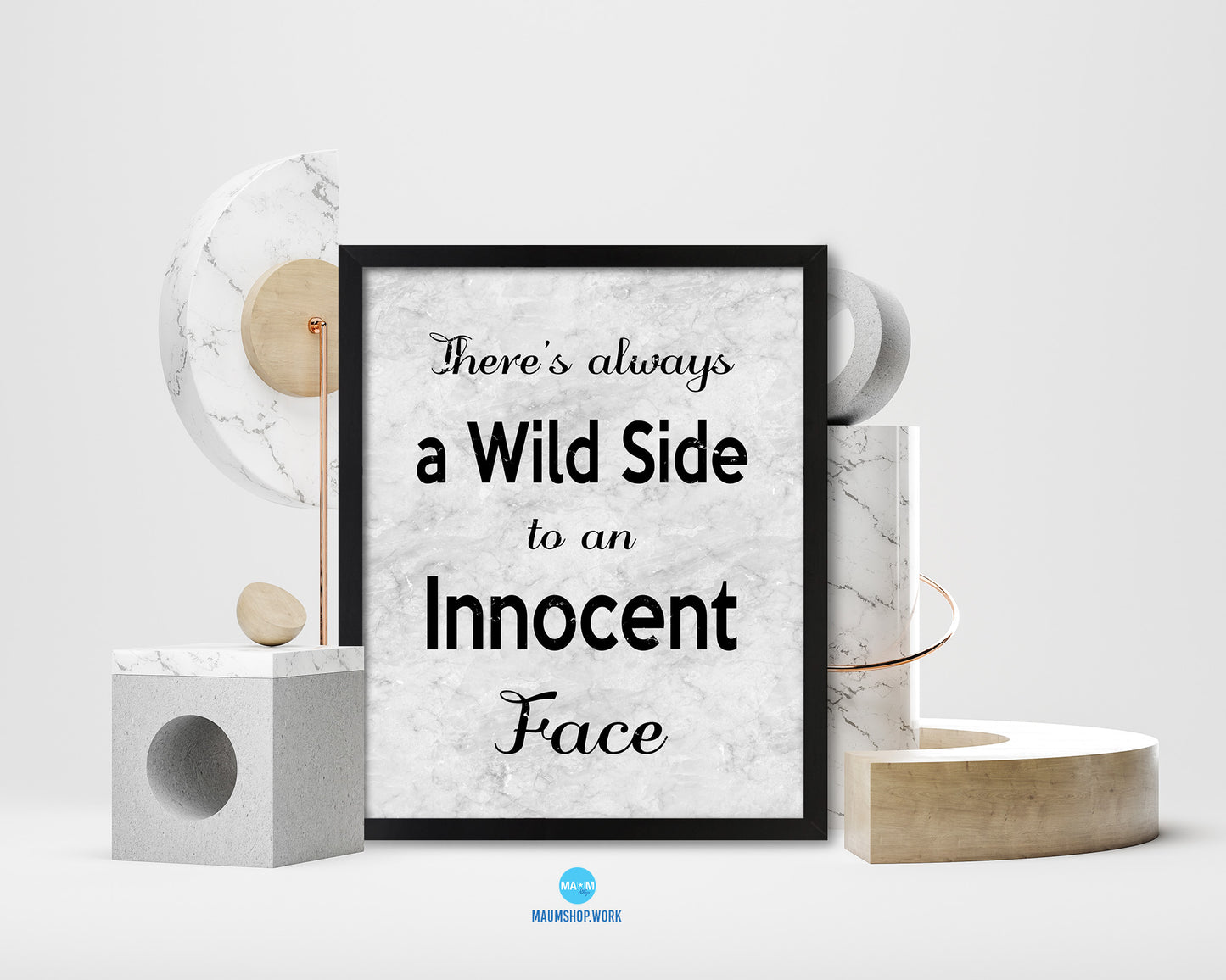 There's always a wild side to an innocent face Quote Framed Print Wall Art Decor Gifts