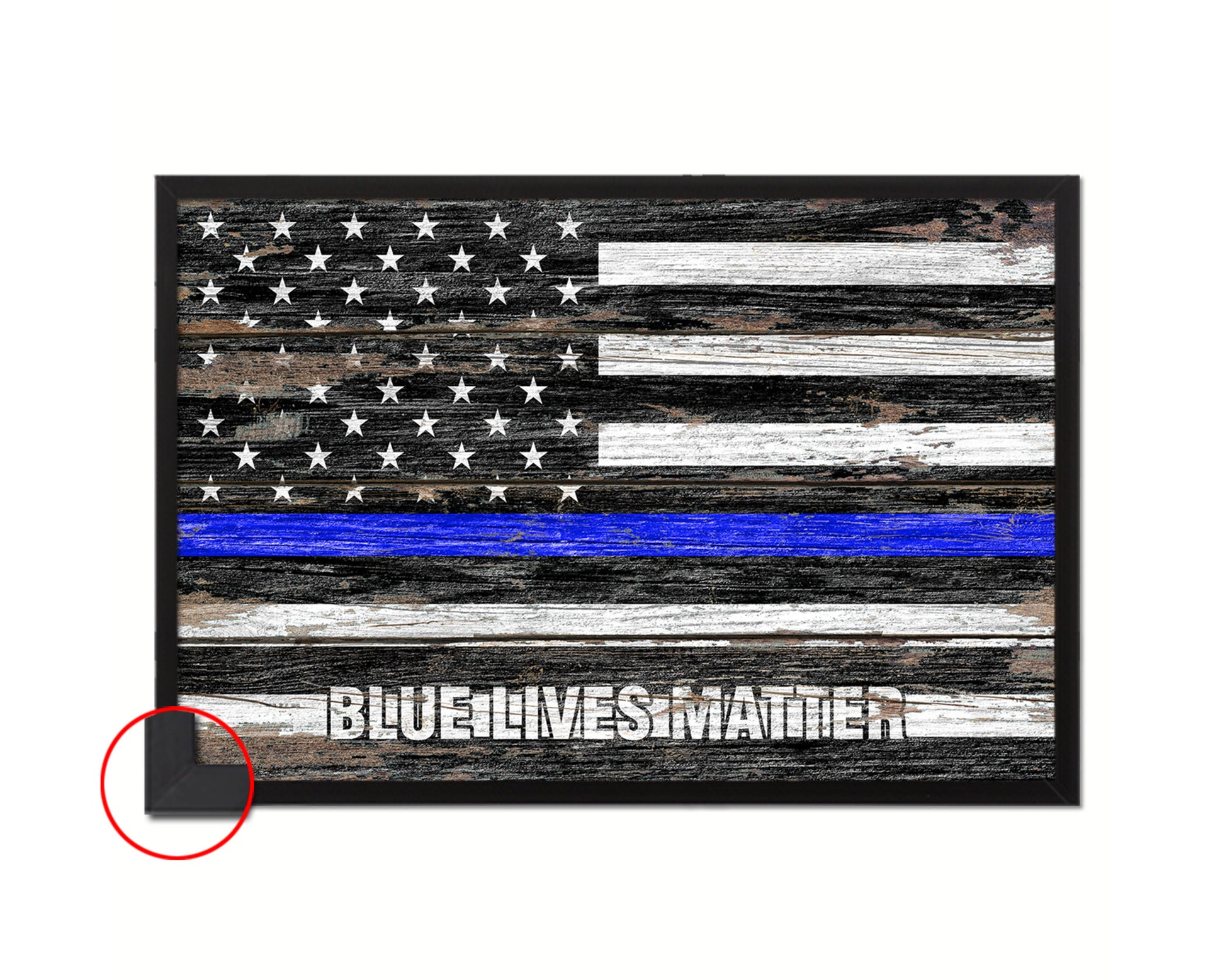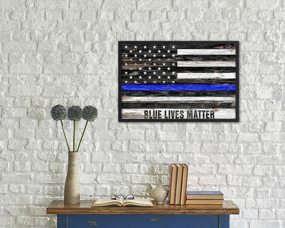 Thin Blue Line Honoring Law Enforcement American, Blue lives matter Wood Rustic Flag Framed Print Art