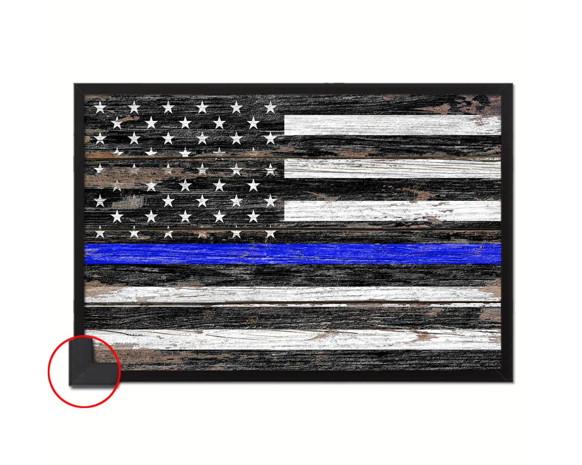 Thin Blue Line Honoring Law Enforcement American Wood Rustic Flag Framed Print Art