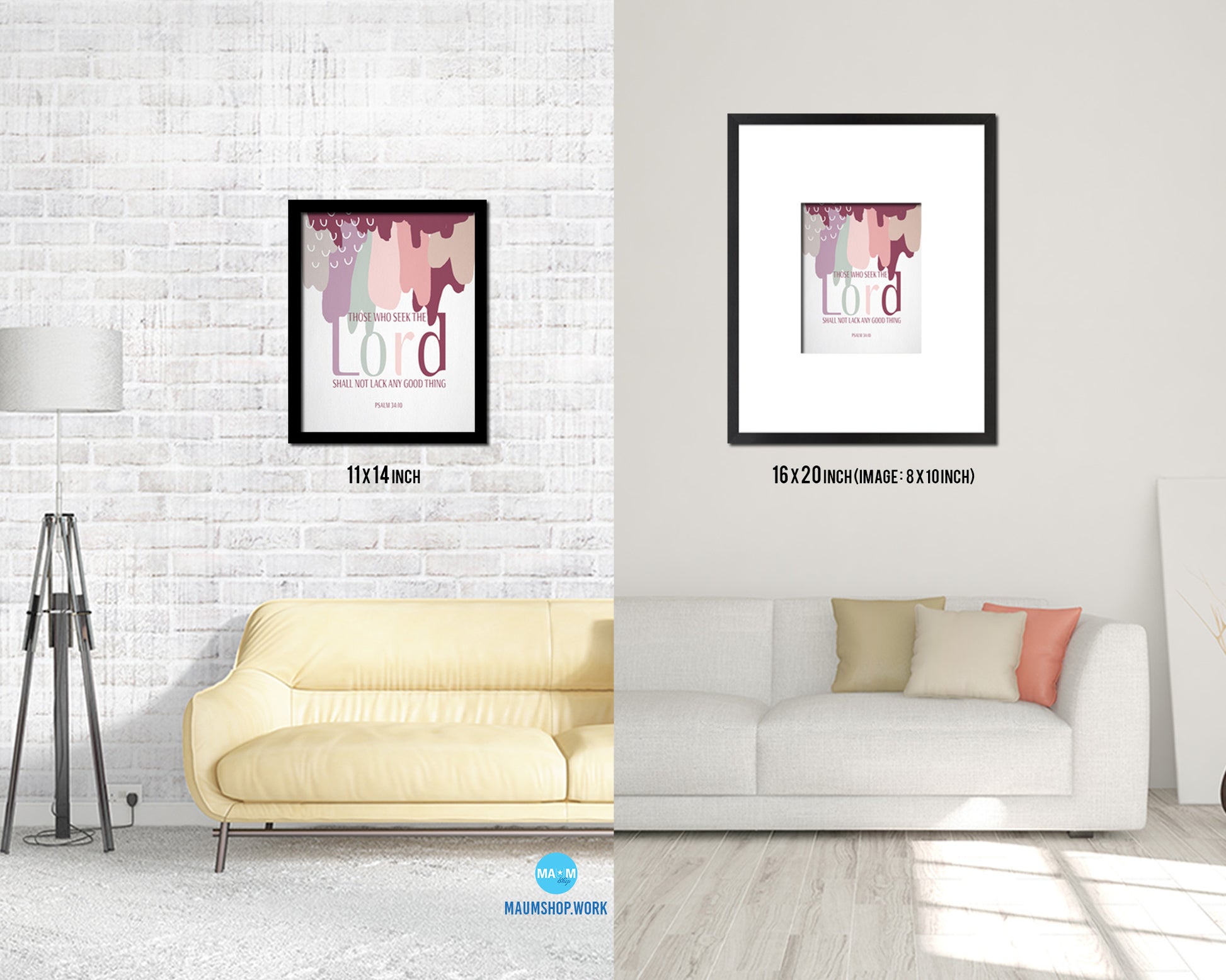 Those who seek the Lord shall not lack any good thing, Psalm 34:10 Bible Verse Scripture Art