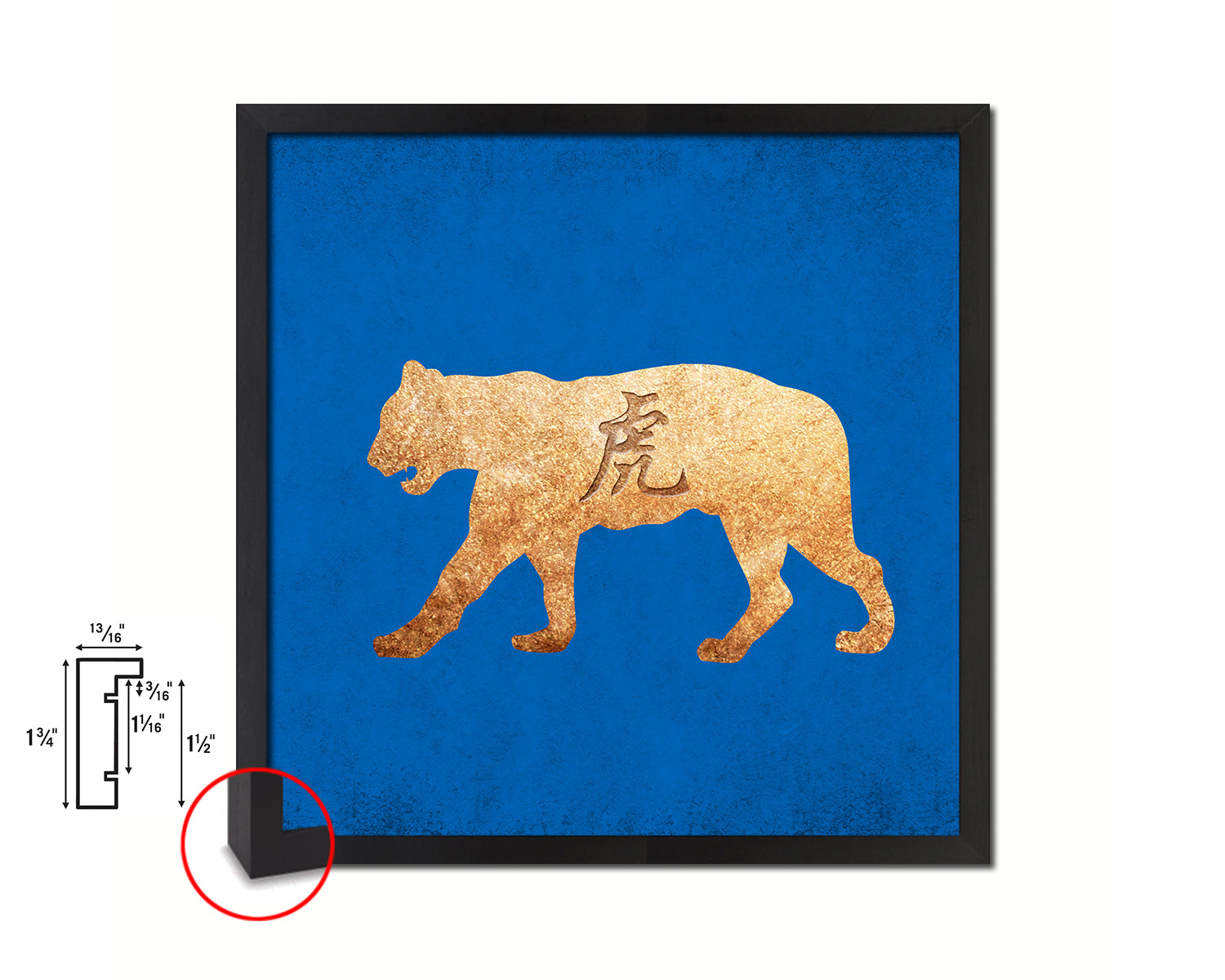 Tiger Chinese Zodiac Character Wood Framed Print Wall Art Decor Gifts, Blue