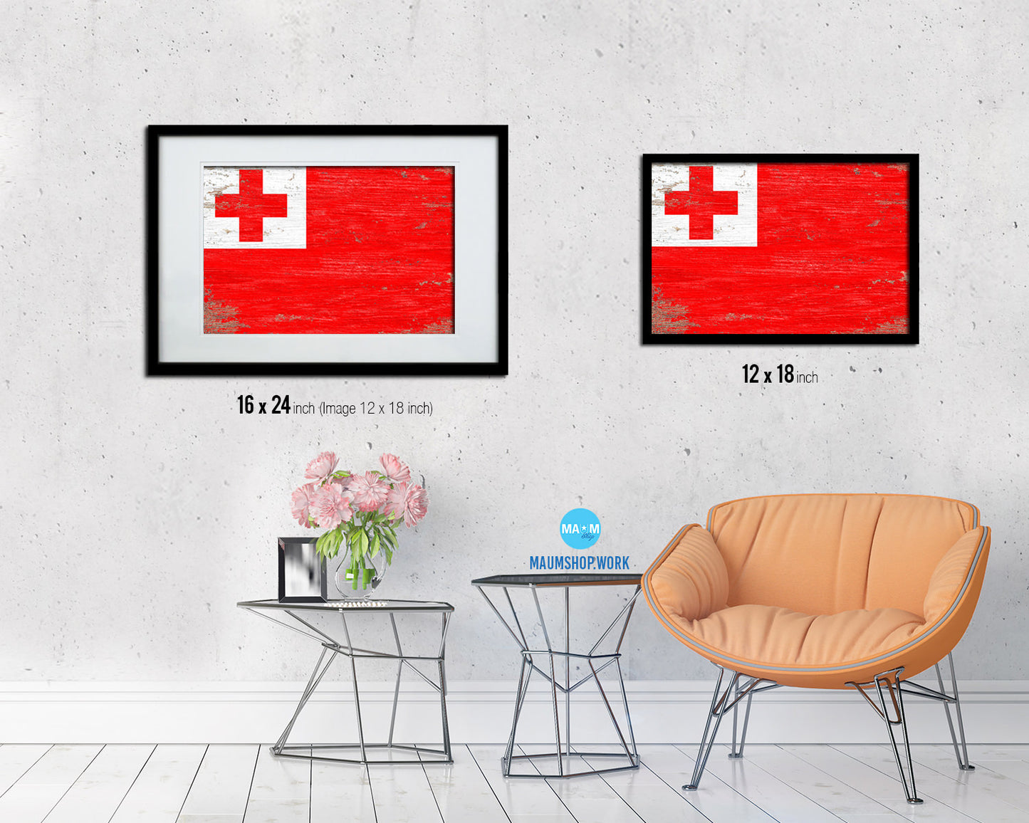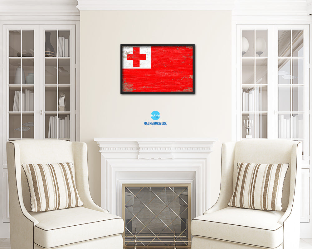Tonga Shabby Chic Country Flag Wood Framed Print Wall Art Decor Gifts