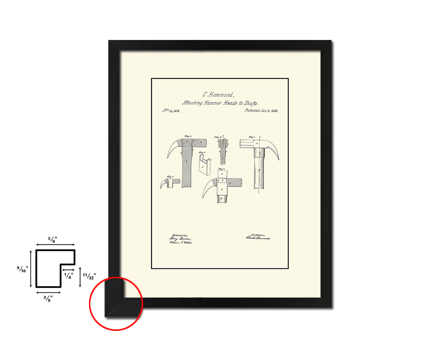 Attaching Hammer Heads to Shafts Tools Vintage Patent Artwork Black Frame Print Gifts