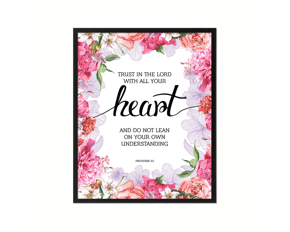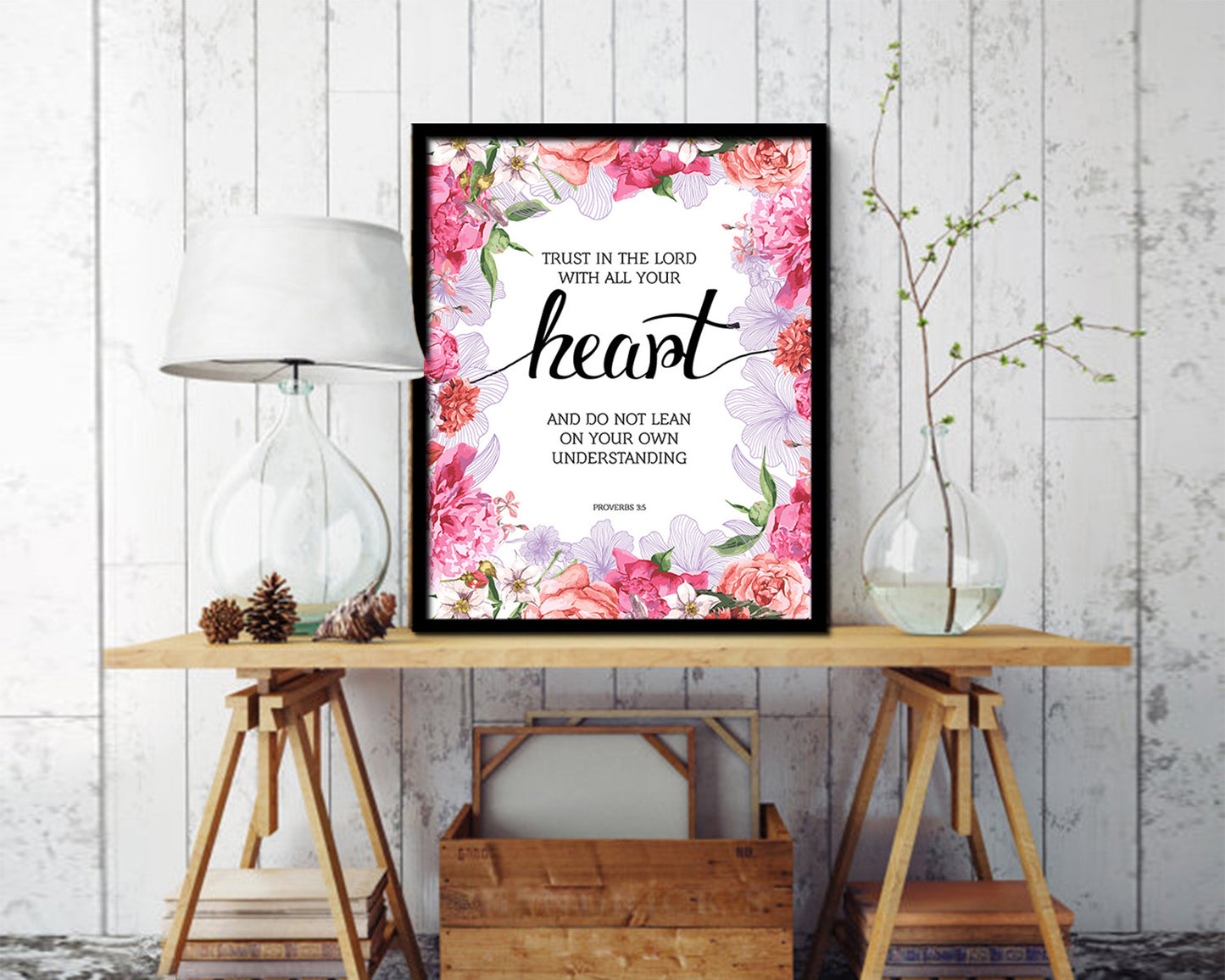 Trust in the Lord with all your Heart, Proverbs 3:5 Quote Framed Print Home Decor Wall Art Gifts