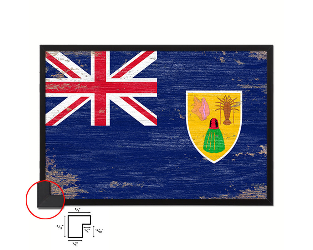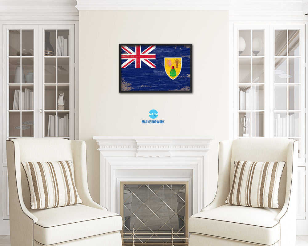 Turks & Caicos Islands Shabby Chic Country Flag Wood Framed Print Wall Art Decor Gifts