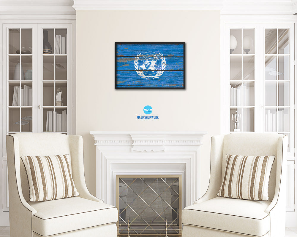 UN Country Wood Rustic National Flag Wood Framed Print Wall Art Decor Gifts