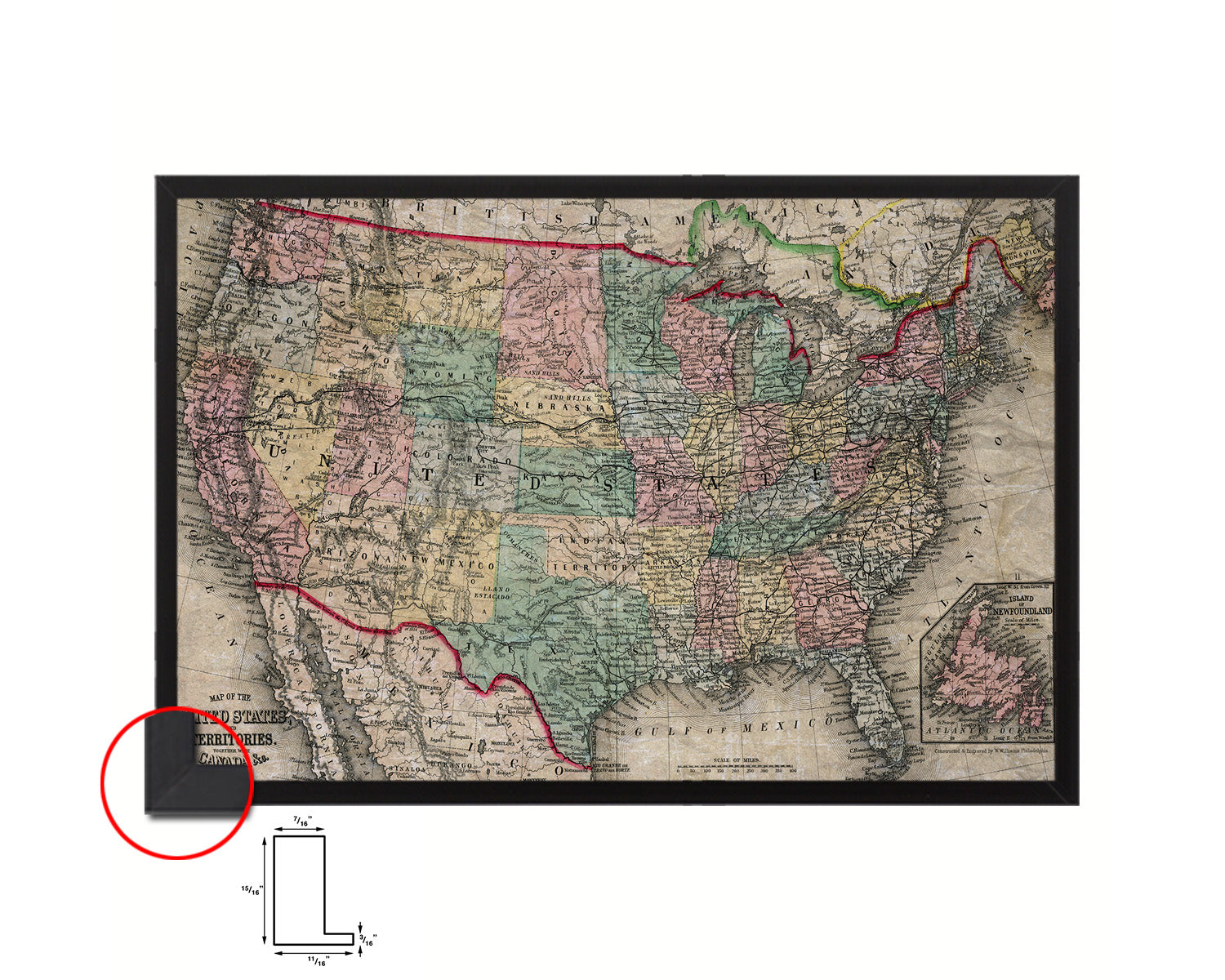 United States Mitchell 1870 Historical Map Framed Print Art Wall Decor Gifts