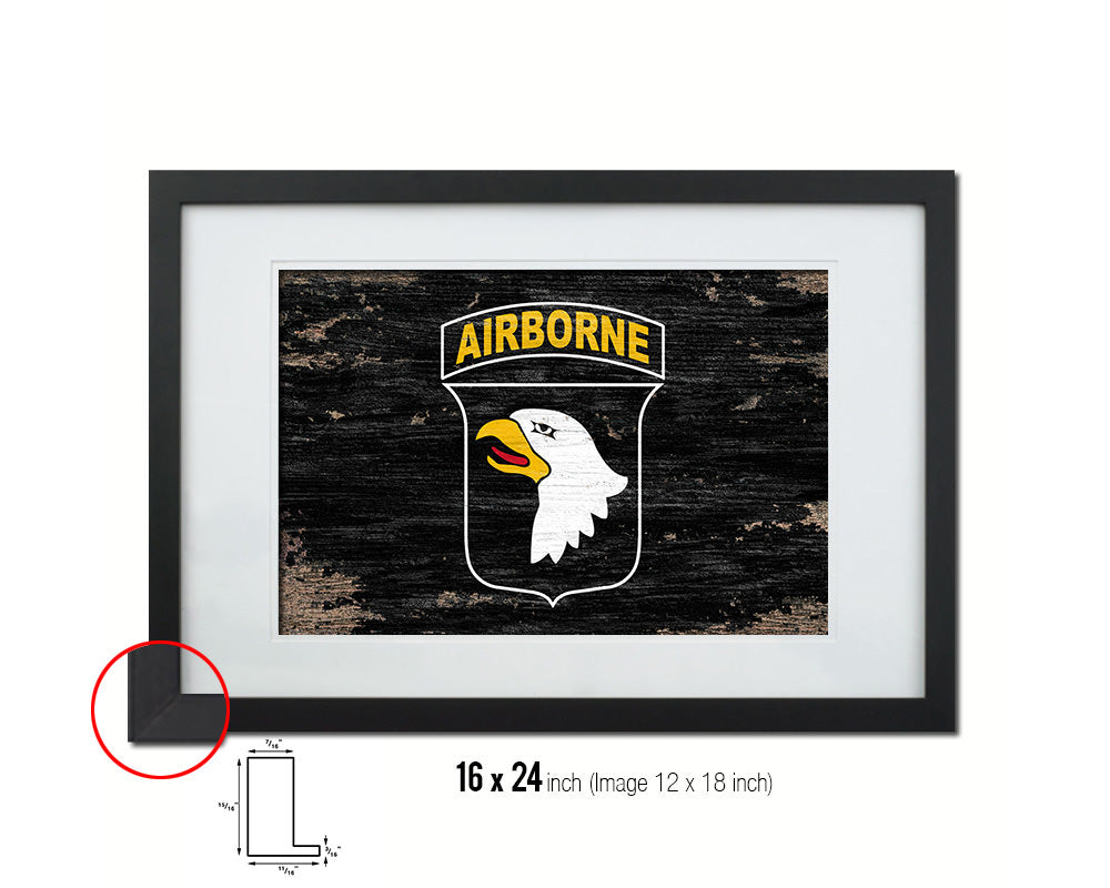 US Army 101st Airborne Shabby Chic Military Flag Framed Print Decor Wall Art Gifts