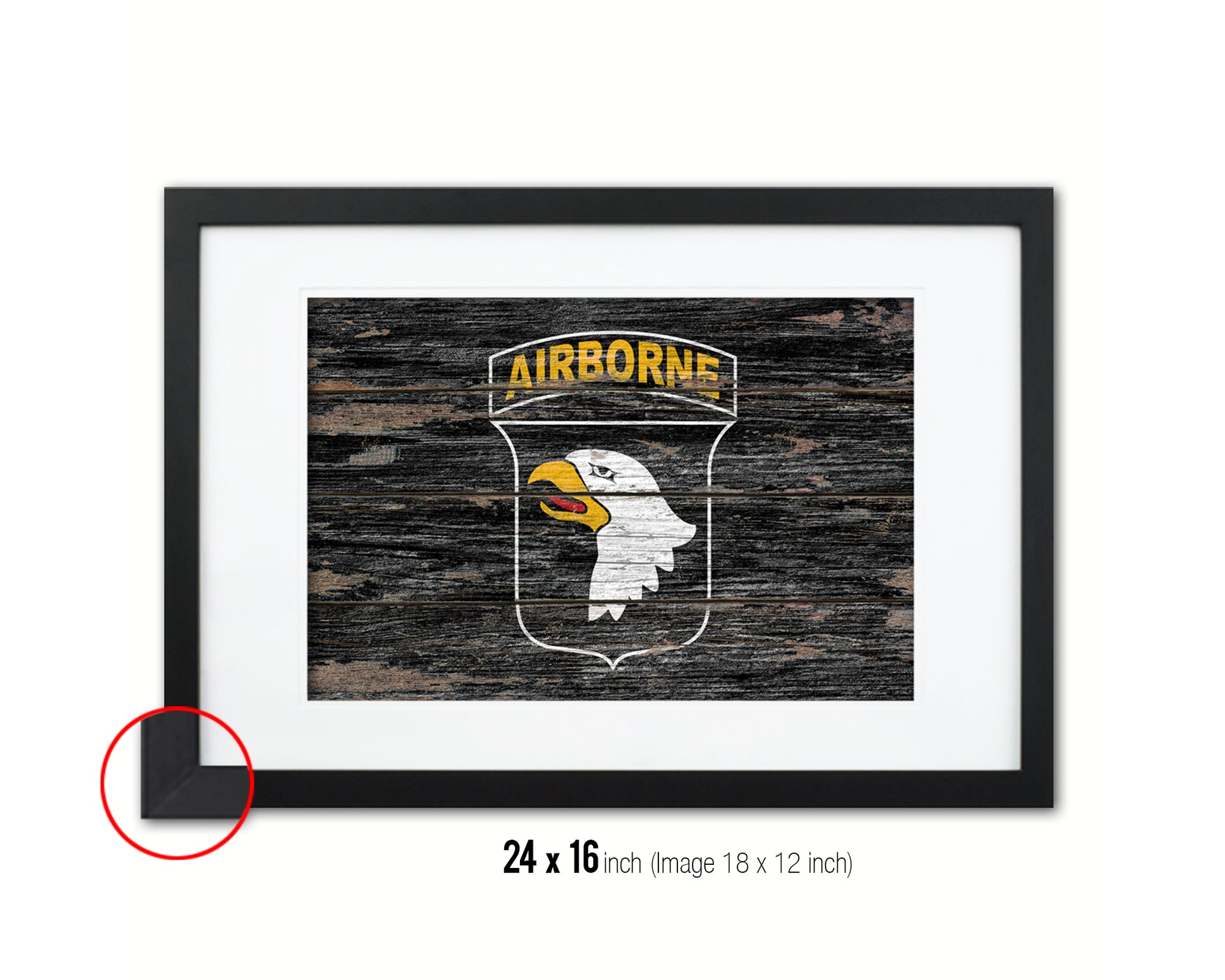 US Army 101st Airborne Wood Rustic Flag Wood Framed Print Wall Art Decor Gifts