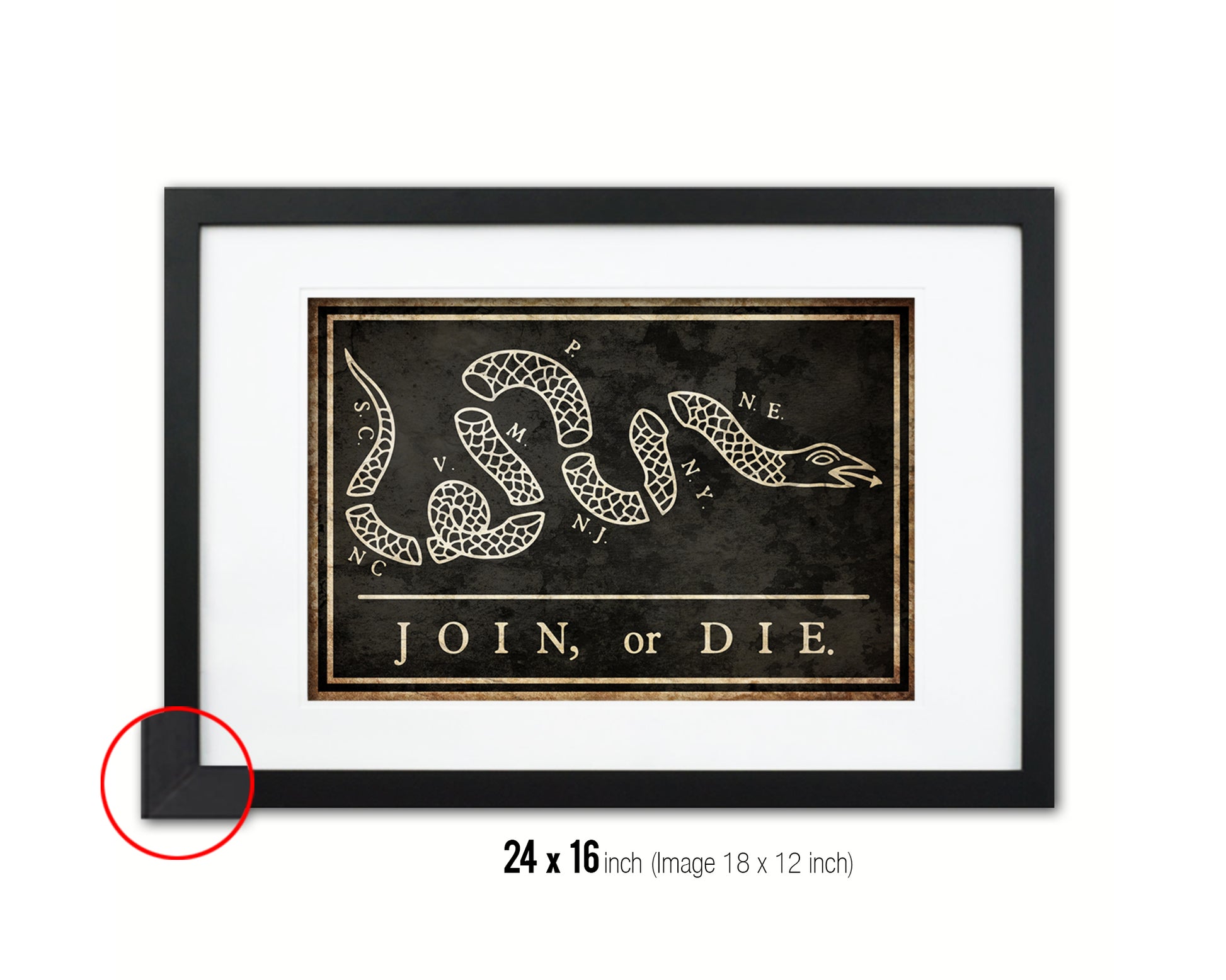 US Join or Die Snake Colonial Revolutionary War Vintage Military Flag Framed Print Art