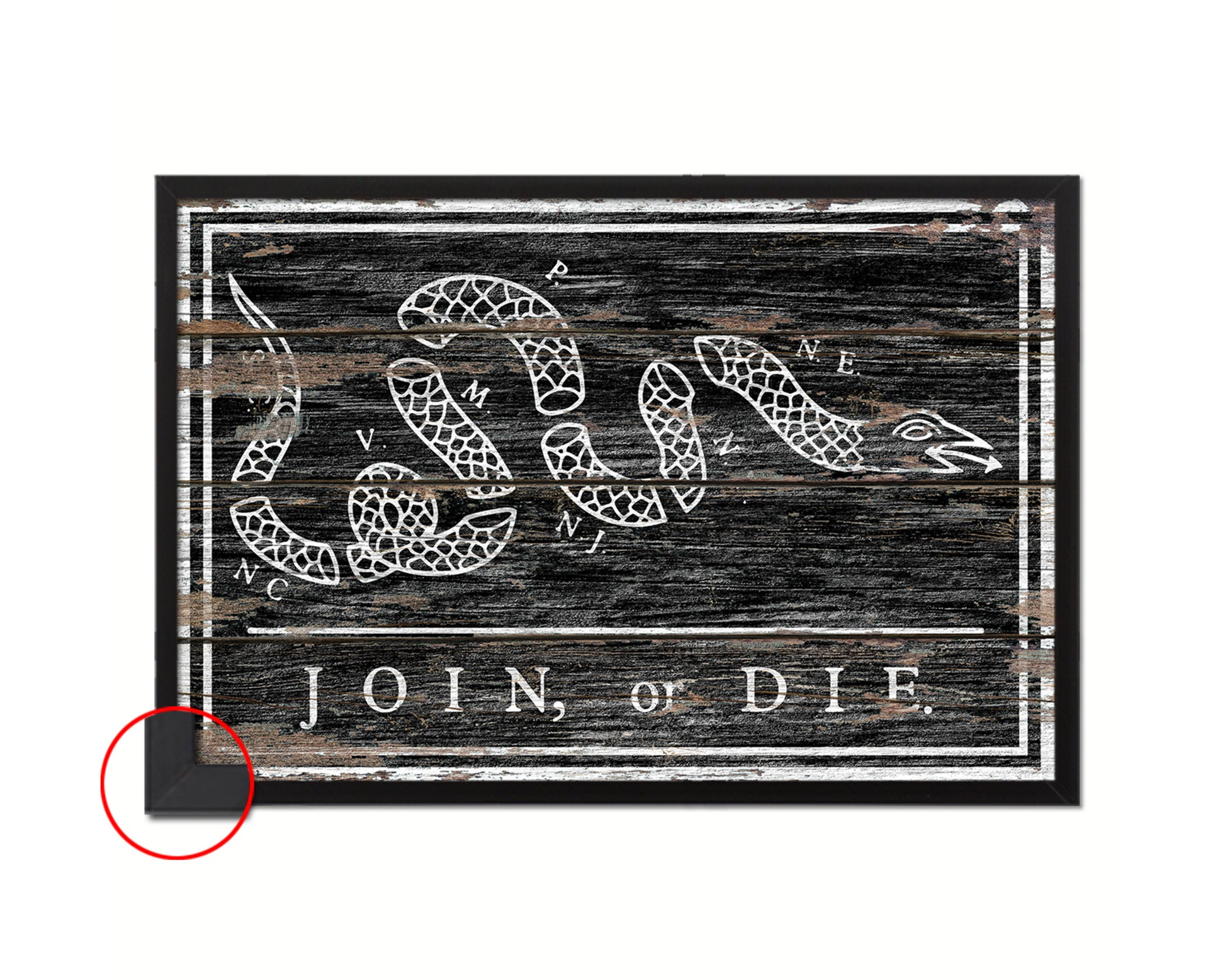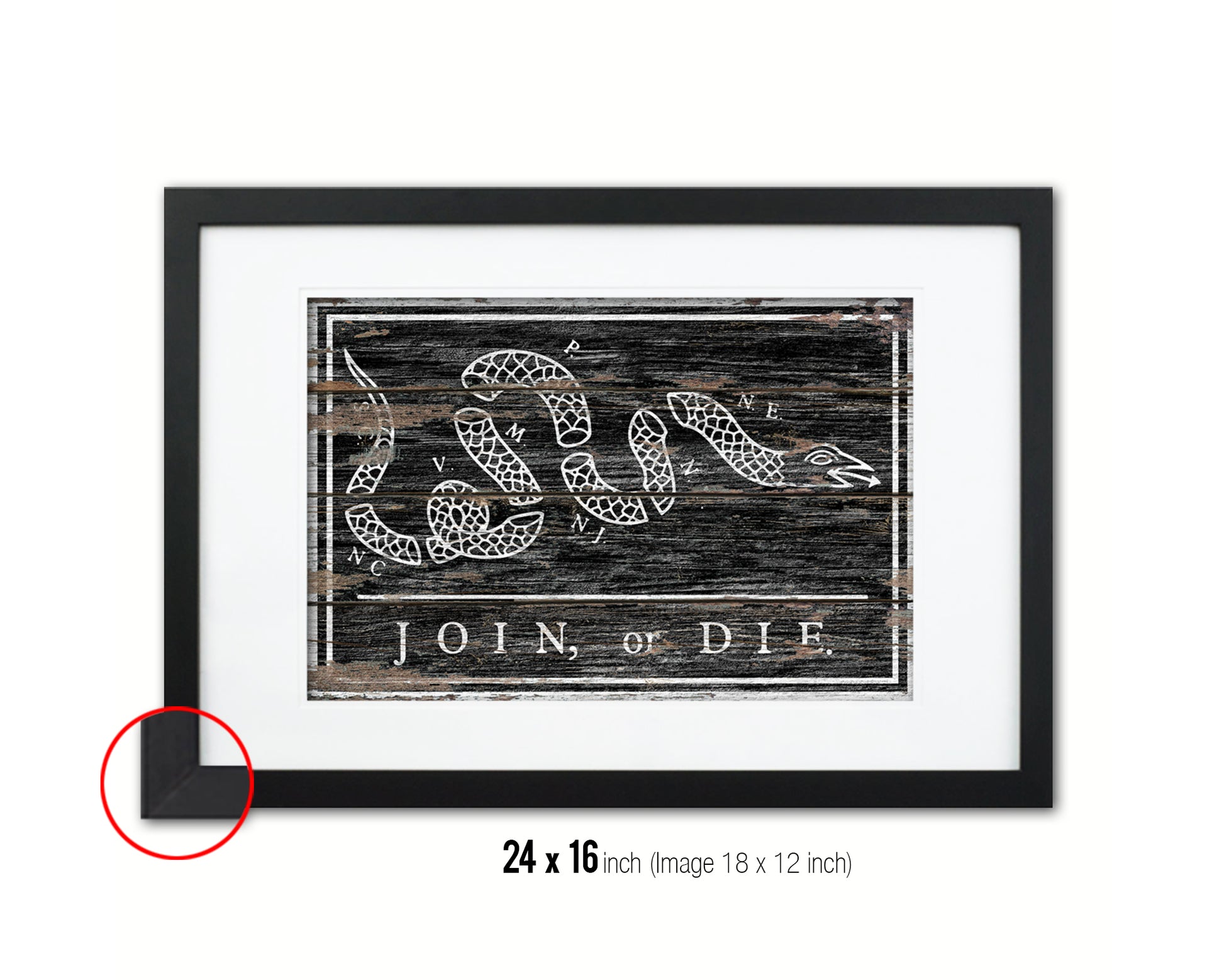 US Join or Die Snake Colonial Revolutionary War Wood Rustic Flag Framed Print Art