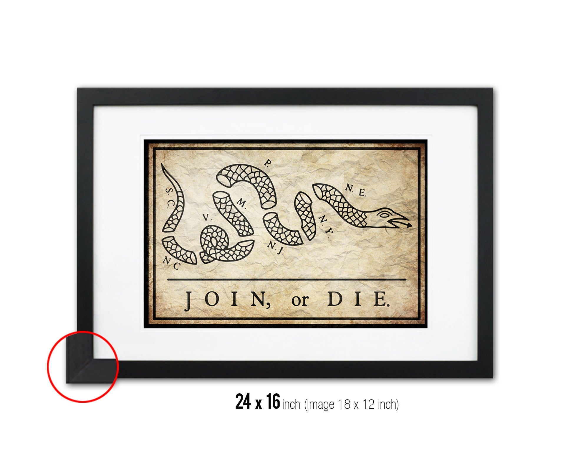 US Join or Die Snake Colonial Revolutionary War Vintage Military Flag Framed Print Art